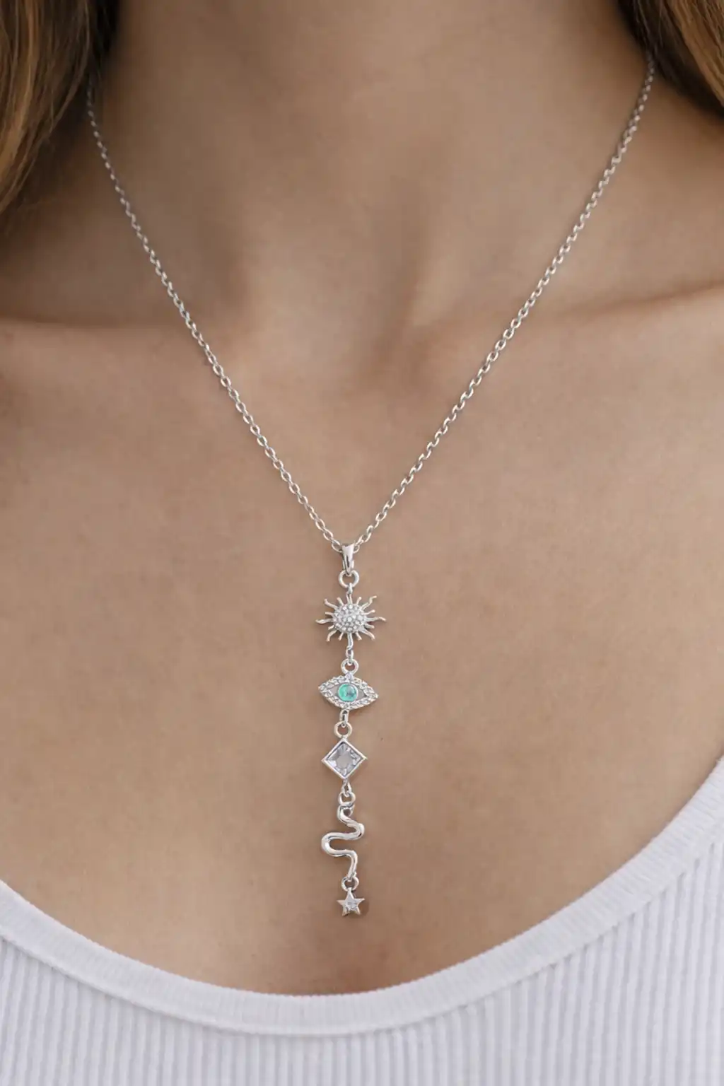 Gümüş Renk Yelpaze Figürlü Çelik Kolye