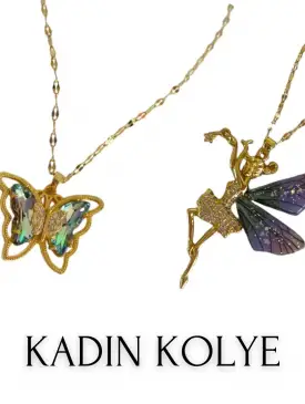 Altın Renk Taş Detaylı 14K Altın Kaplama VİP Kolye