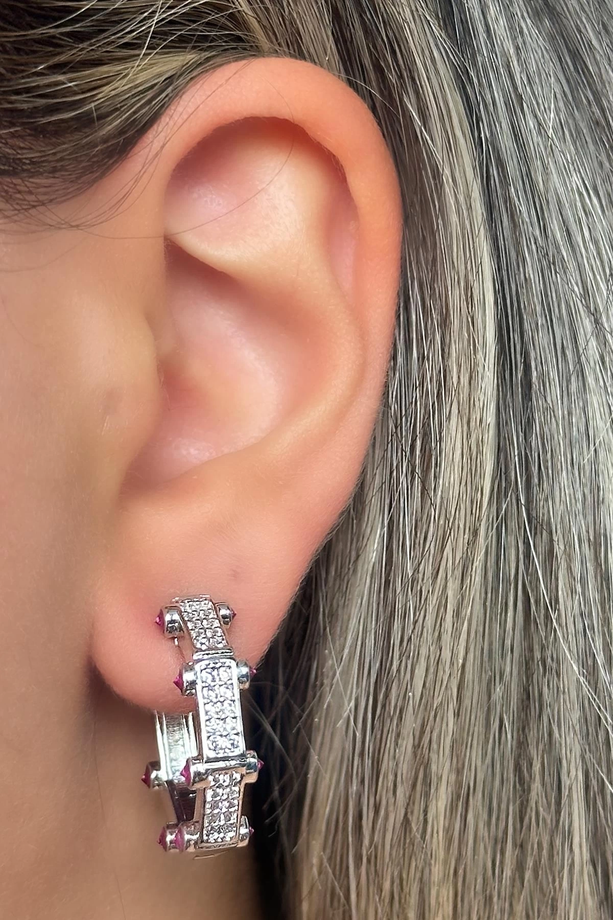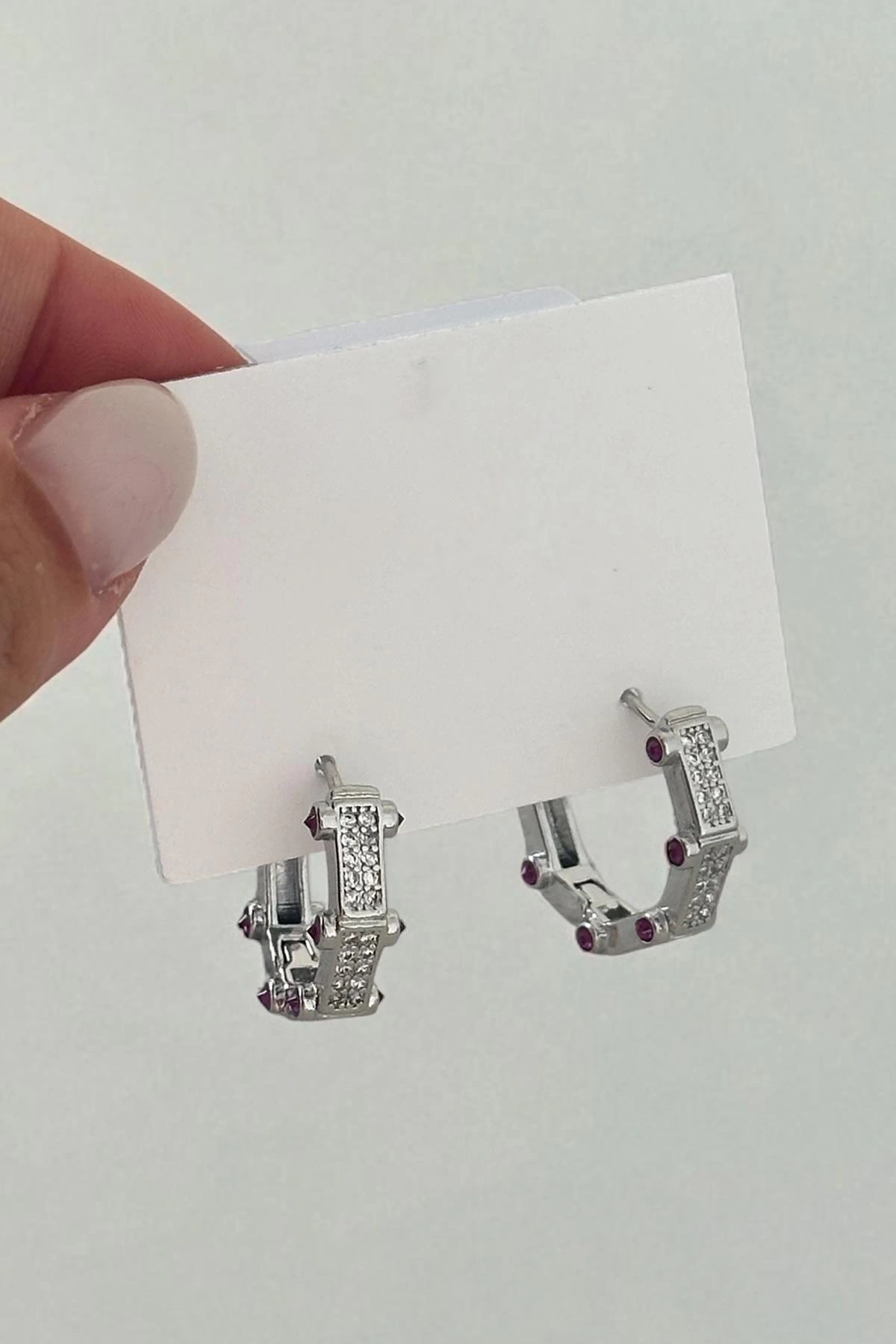 Gümüş Renk Taş Detaylı YSX Halka Küpe (Çift)