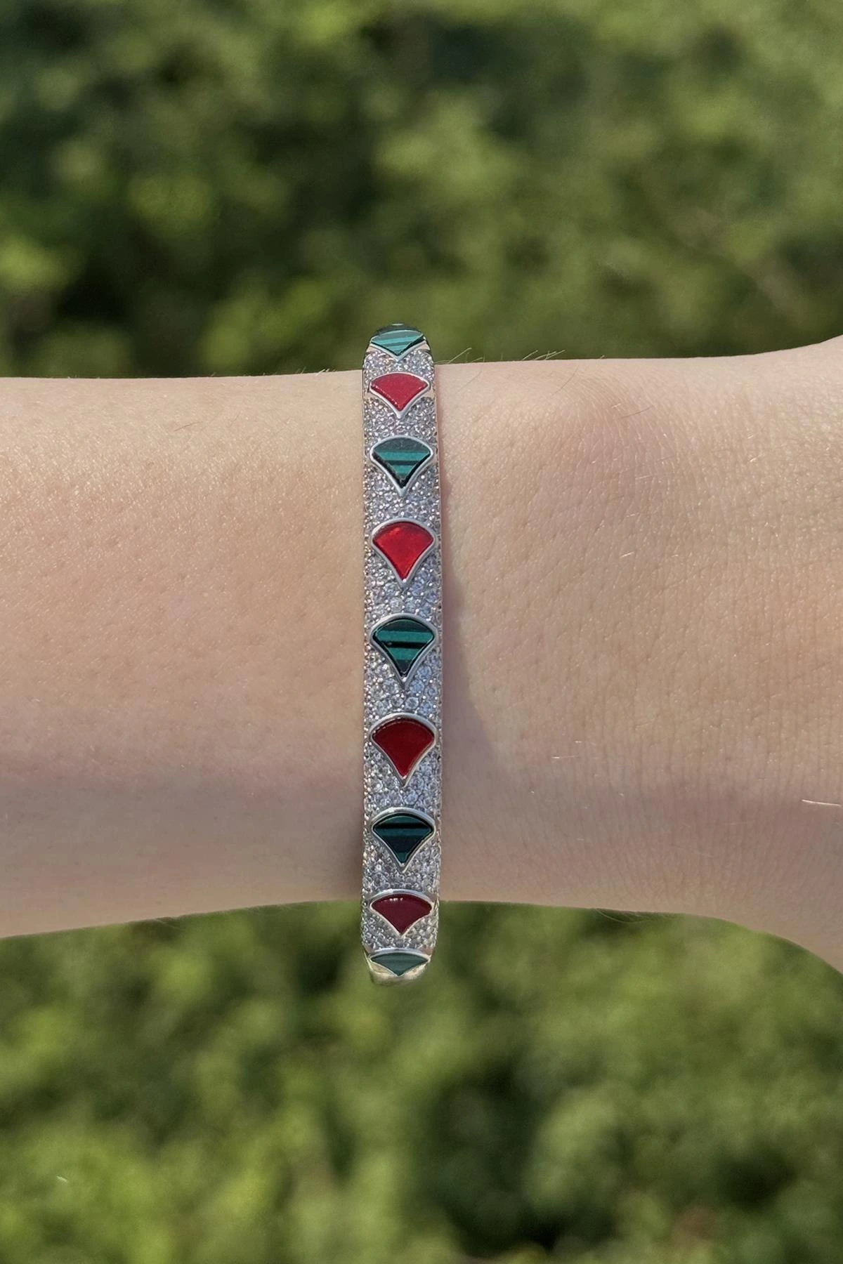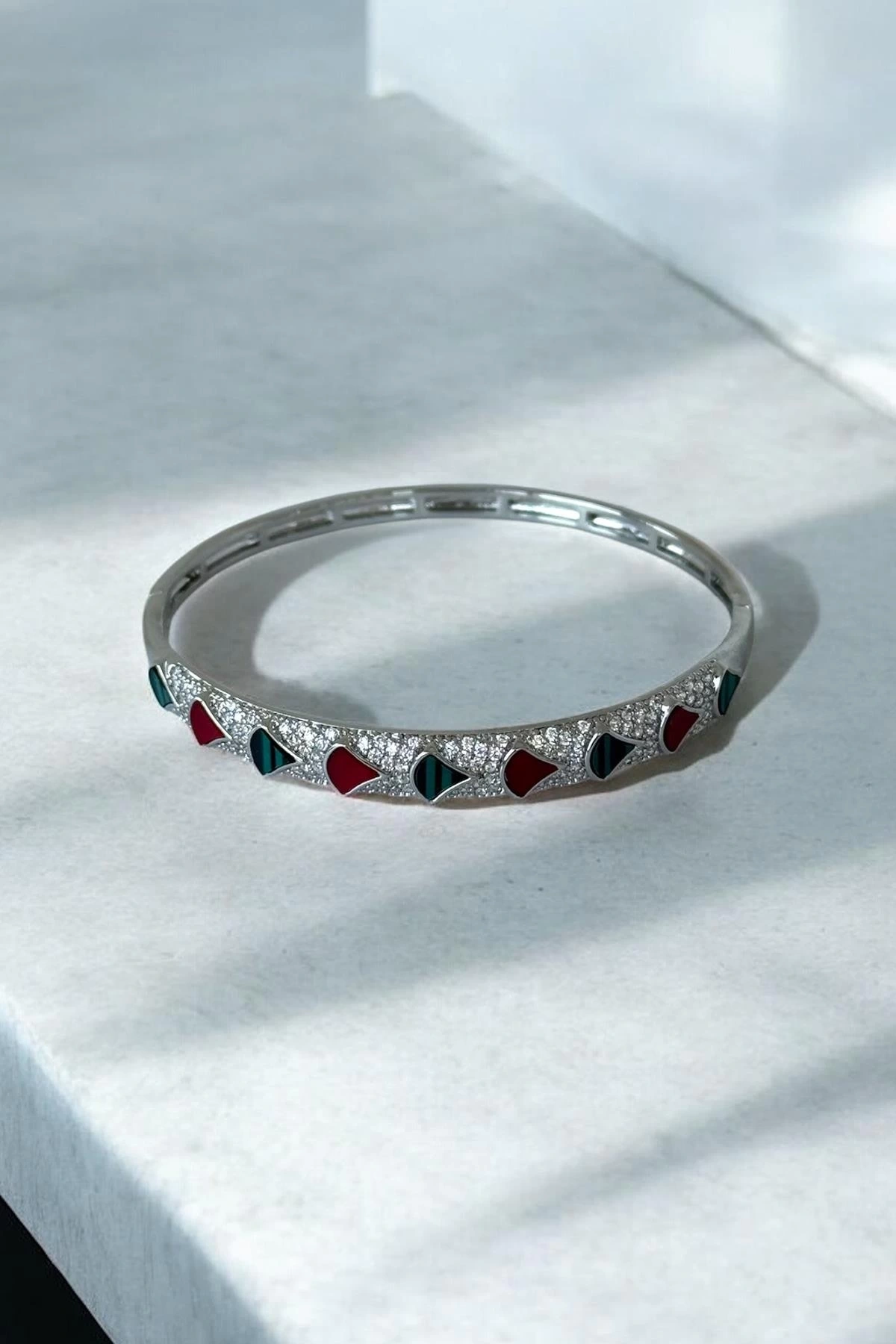 Gümüş Renk Taş Detaylı YSX Kelepçe Bileklik