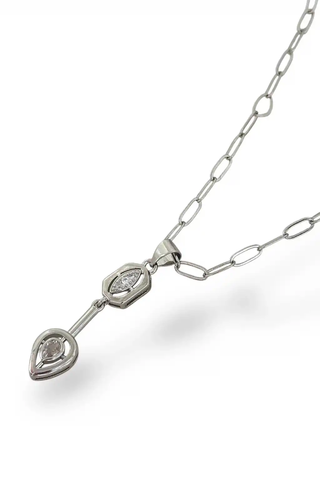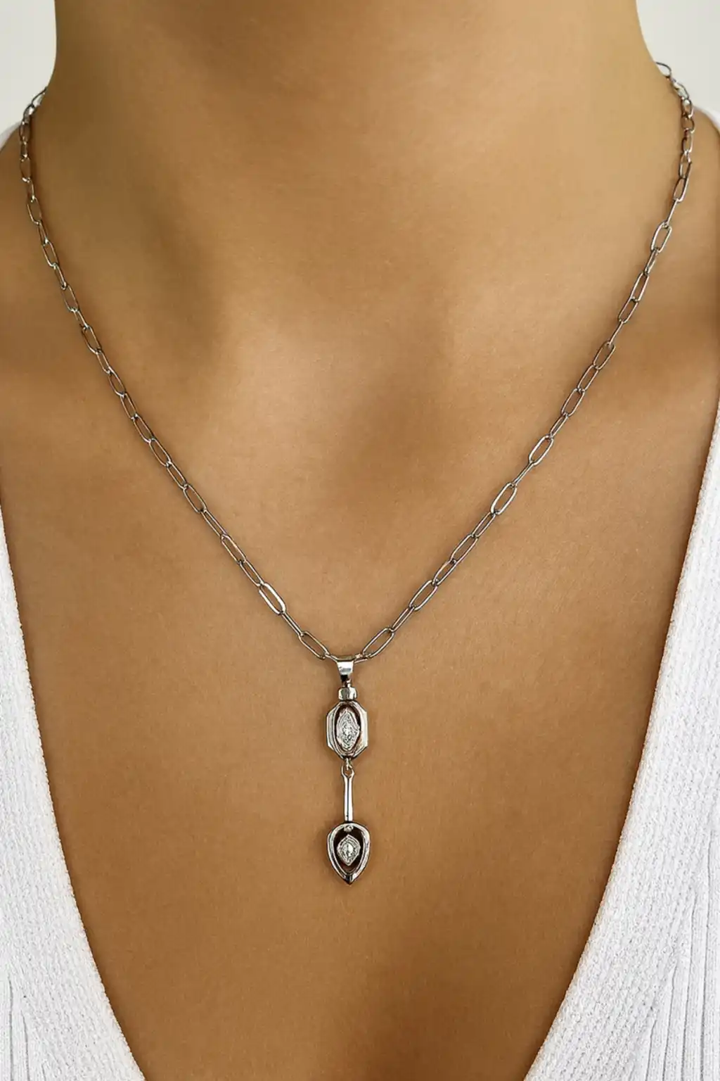 Gümüş Renk Hologram Taş Detaylı Tasarım Abiye Kolye