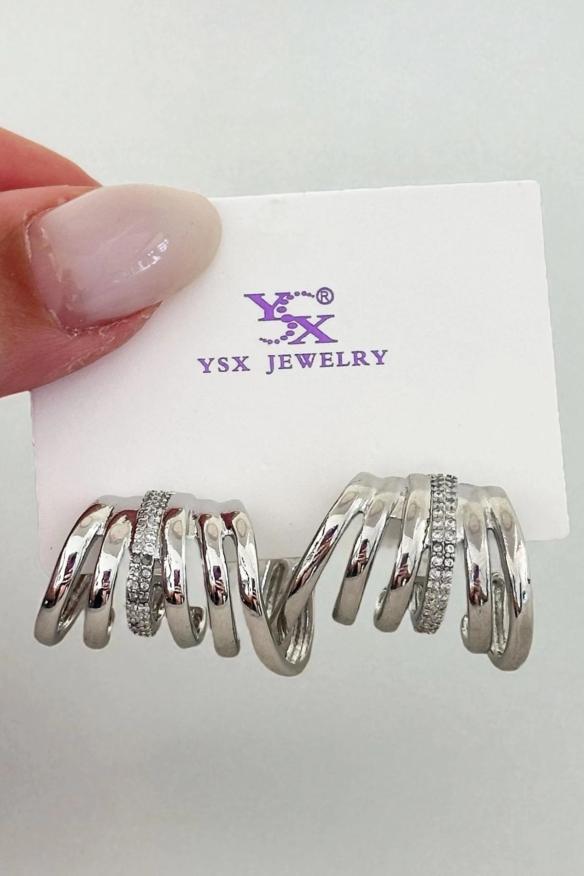 Gümüş Renk Taş Detaylı YSX Küpe (Çift)