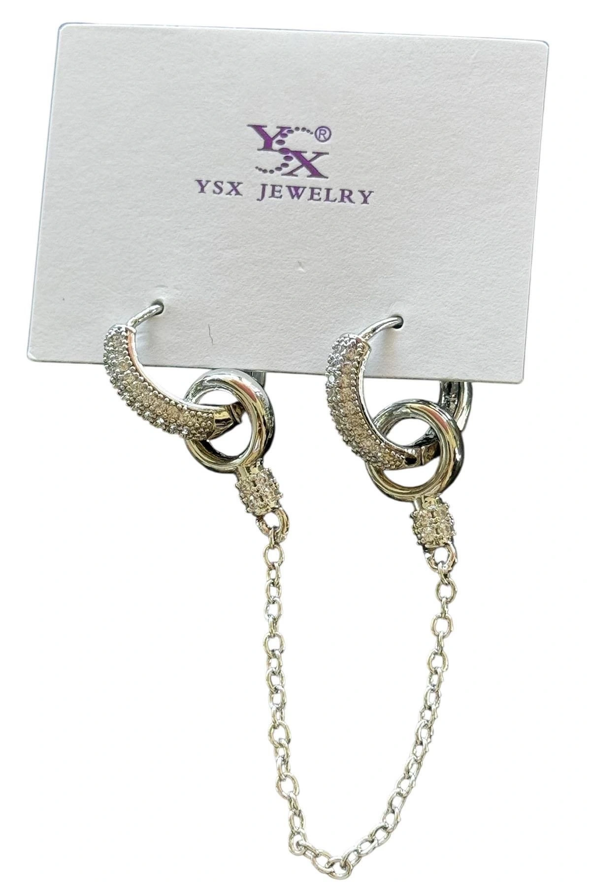 Gümüş Renk Taş Detaylı YSX Küpe (Çift)