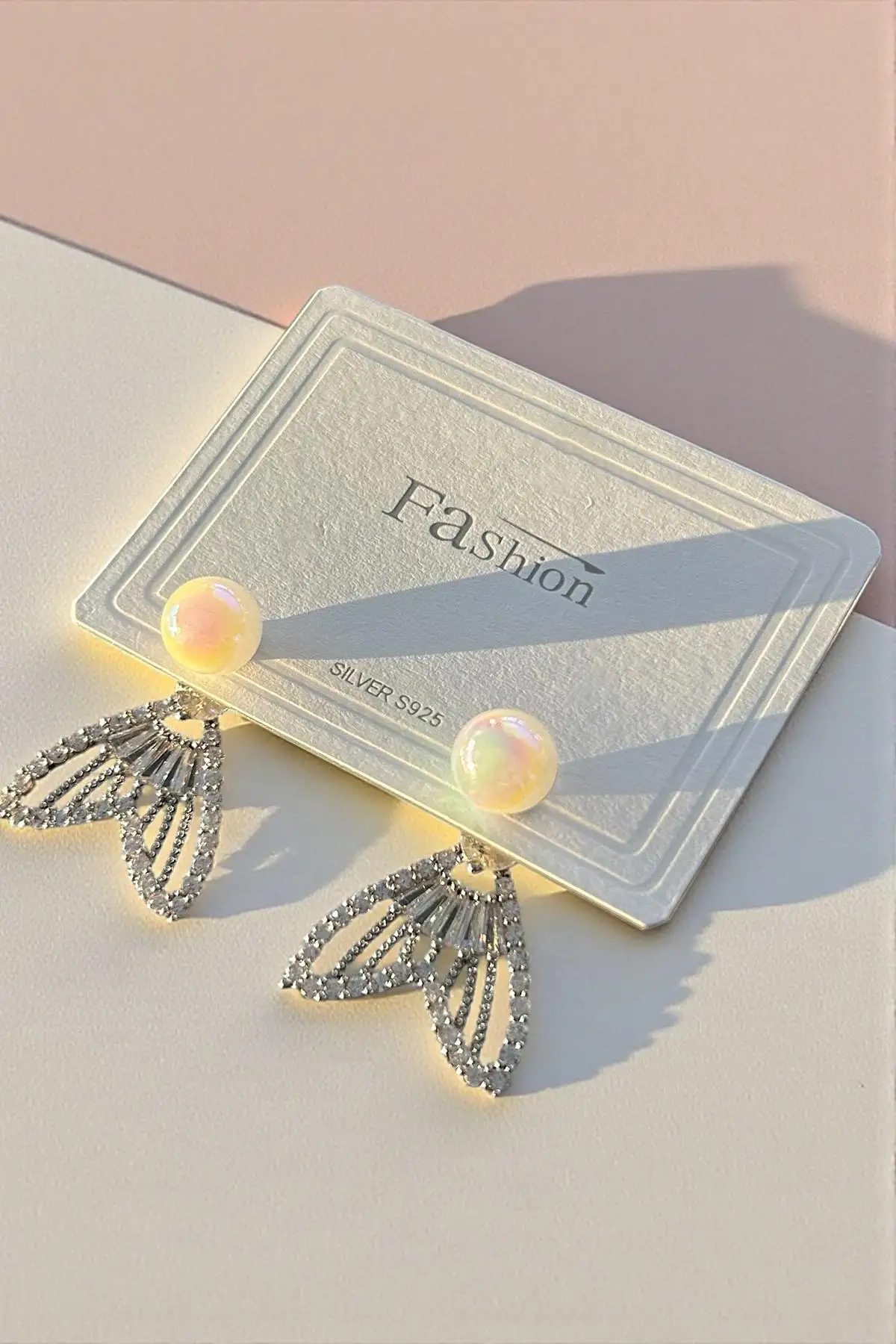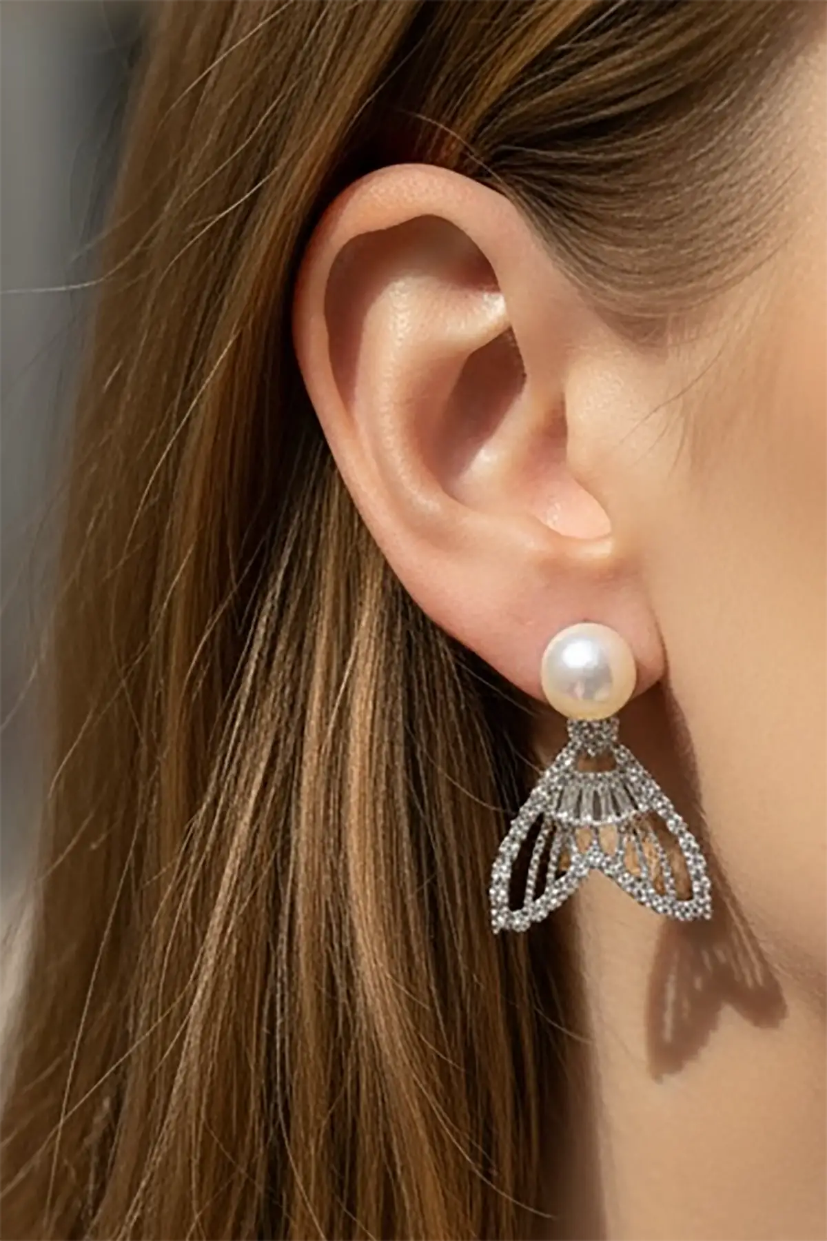 Gümüş Renk Taş Ve İnci Detaylı 14K Altın Kaplama Küpe (Çift)