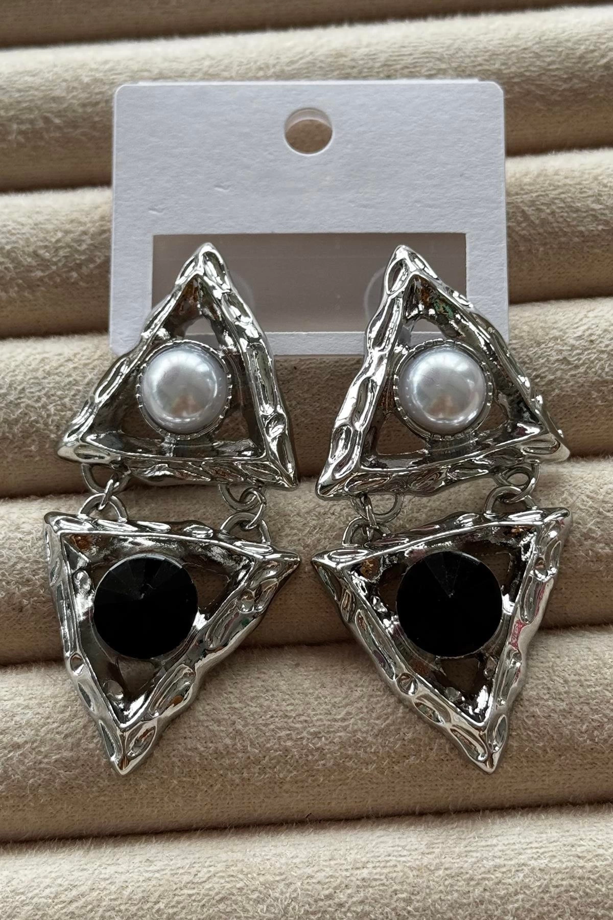 Gümüş Renk Taş Ve İnci Detaylı Küpe (Çift)