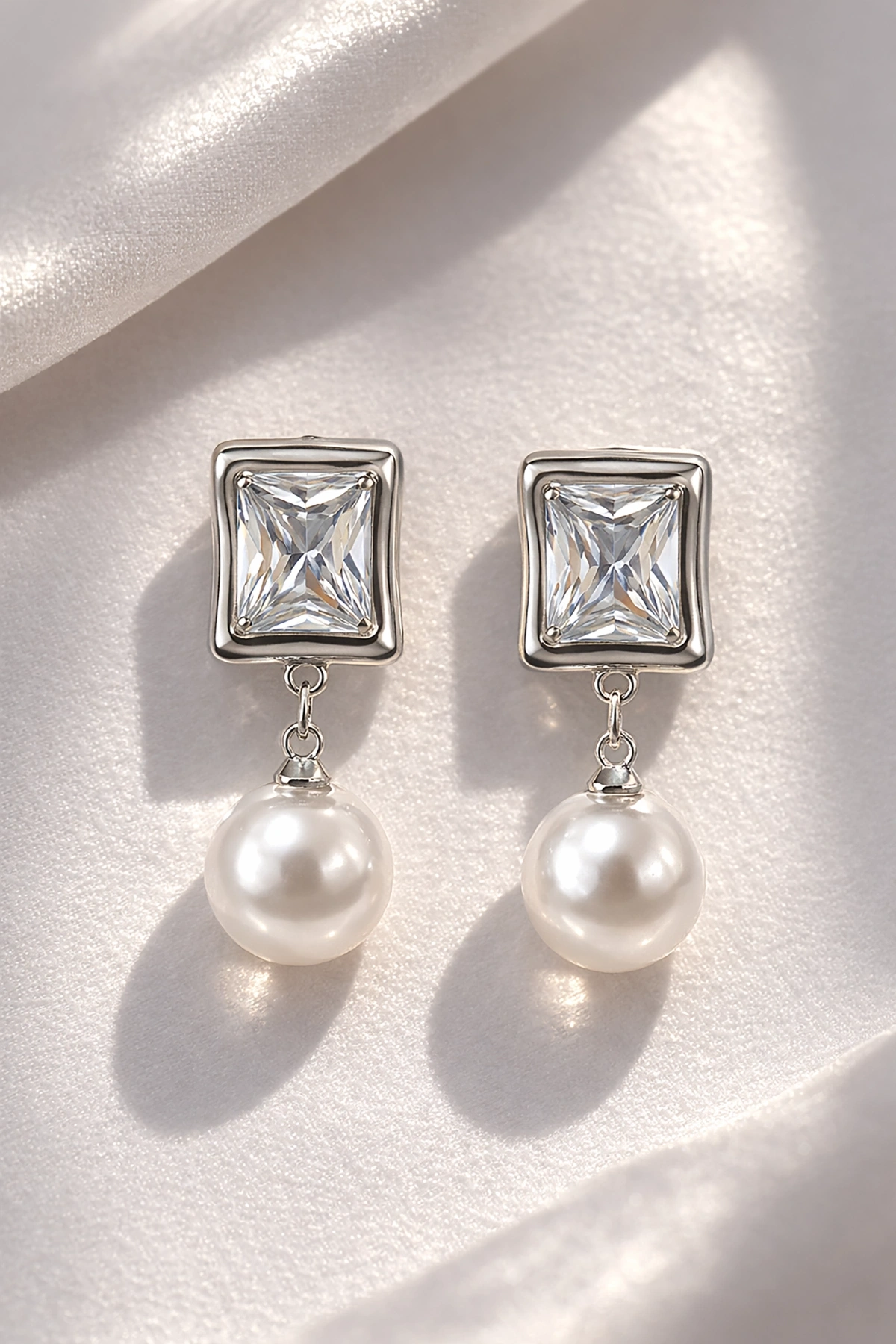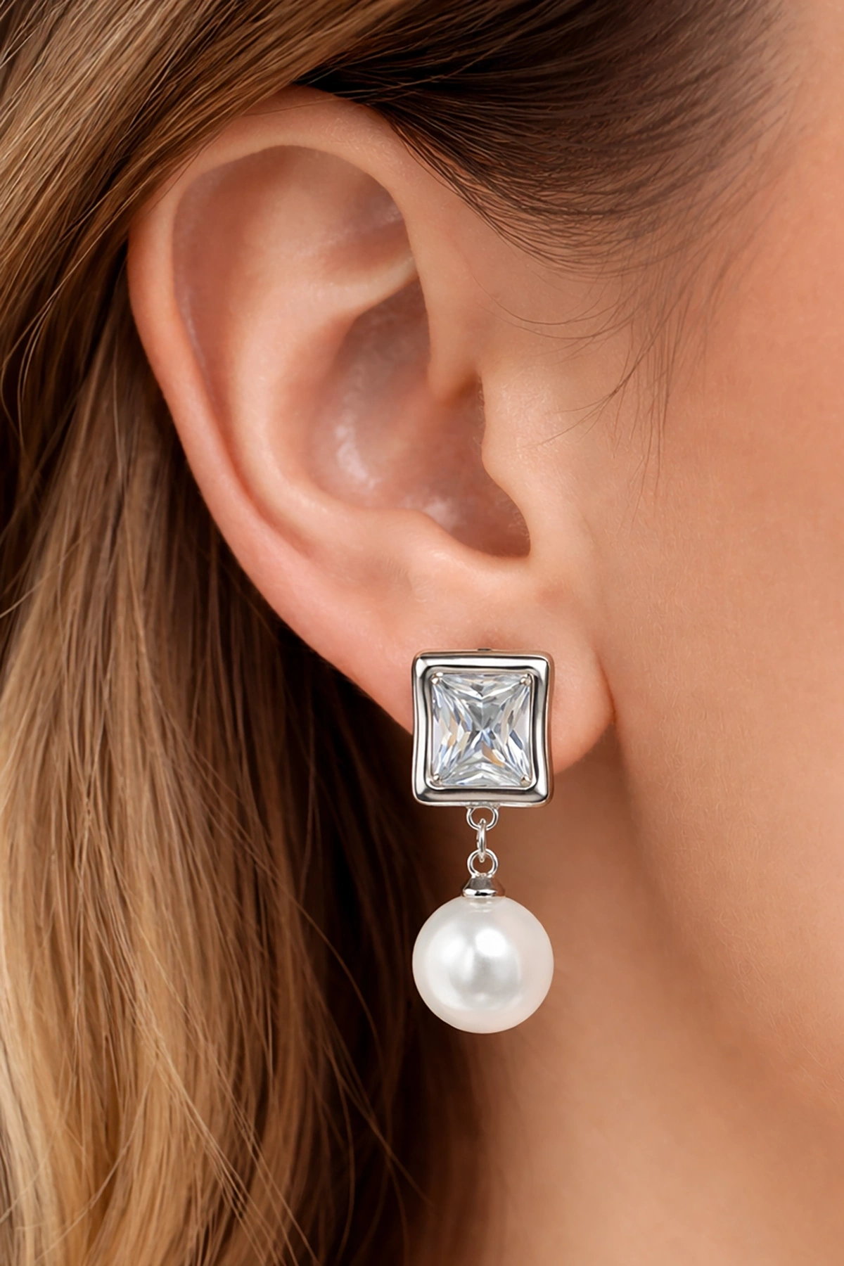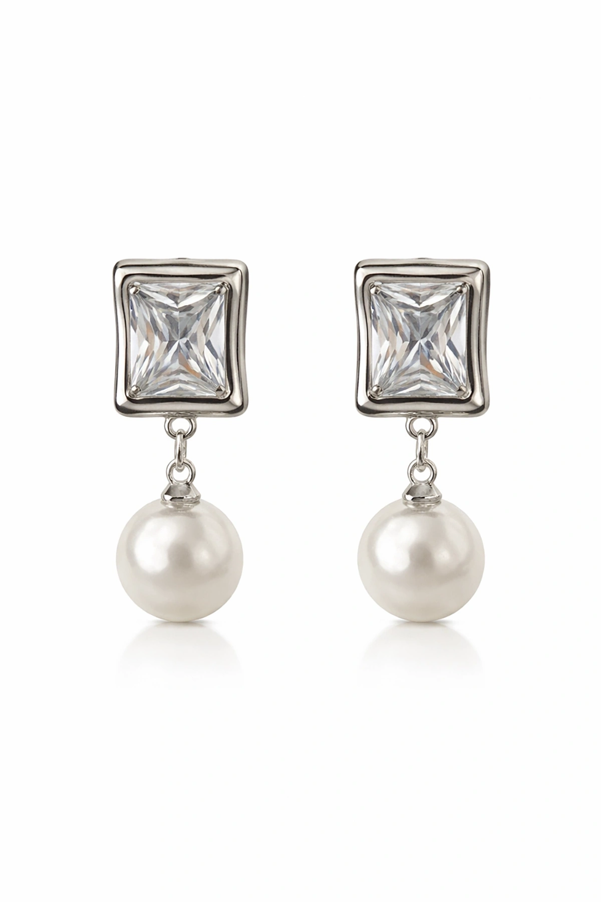 Gümüş Renk Taş Ve İnci Detaylı Küpe (Çift)
