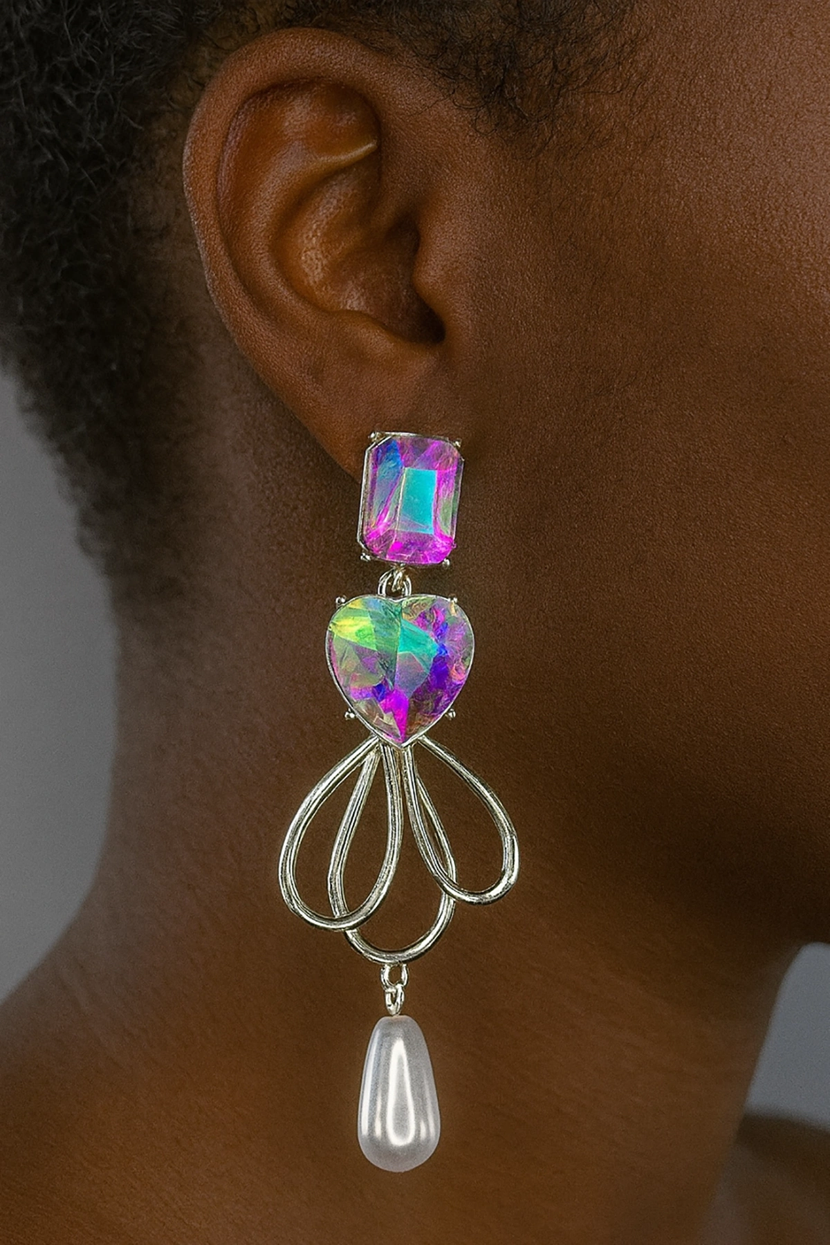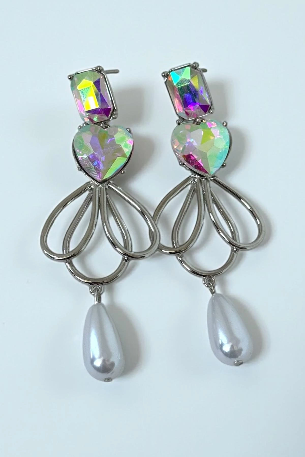 Gümüş Renk Taş Ve İnci Detaylı Tasarım Küpe (Çift)
