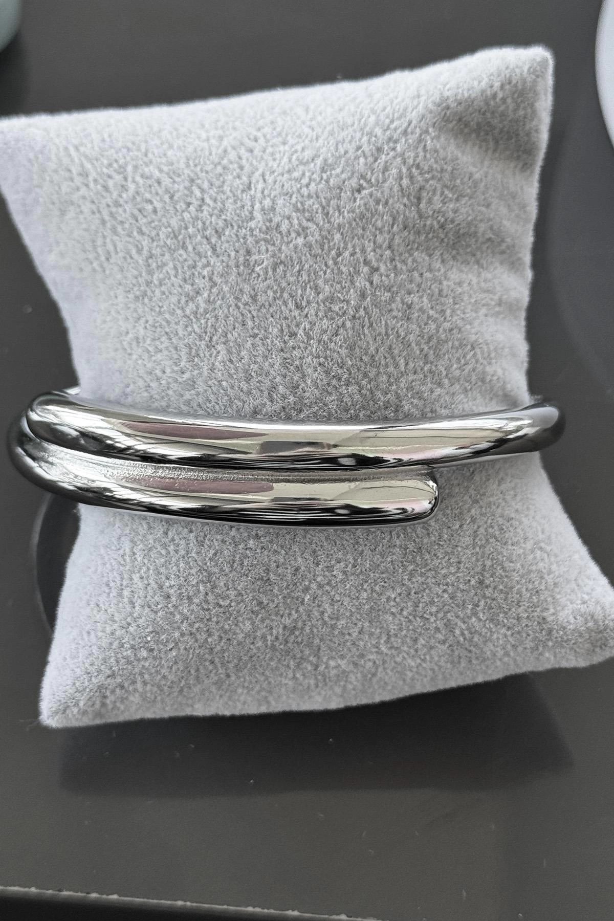 Gümüş Renk Tasarım Çelik Kelepçe Bileklik