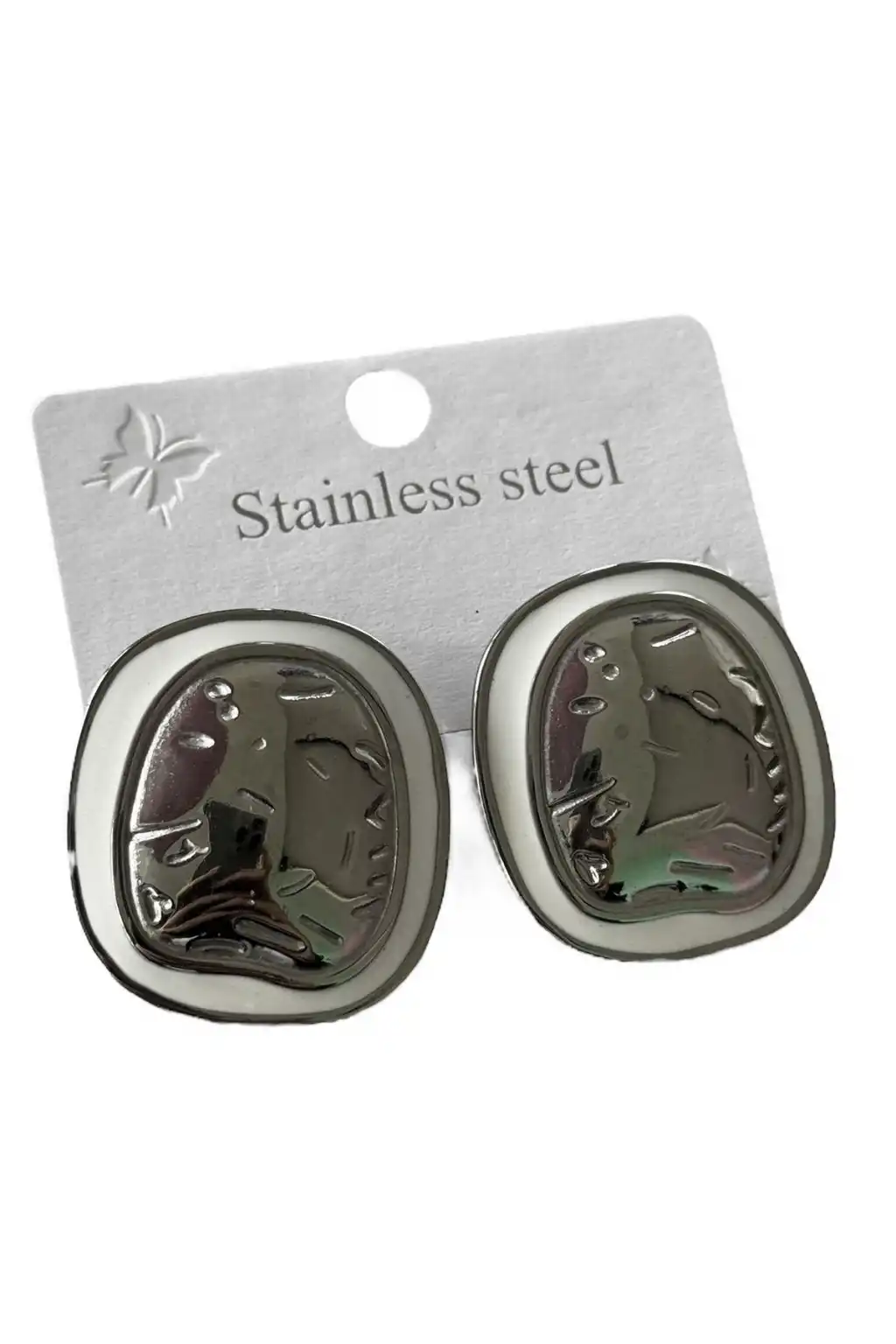 Gümüş Renk Tasarım Çelik Küpe (Çift)