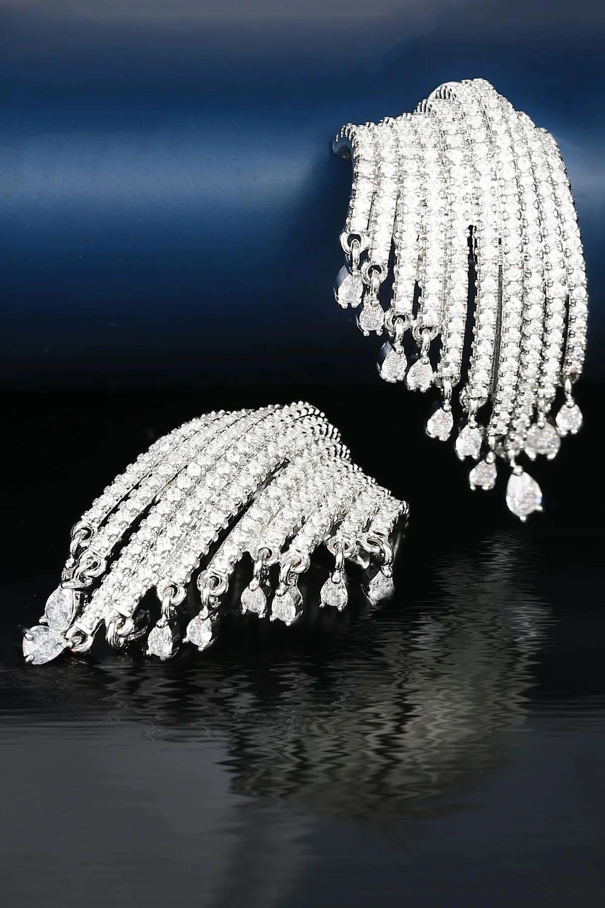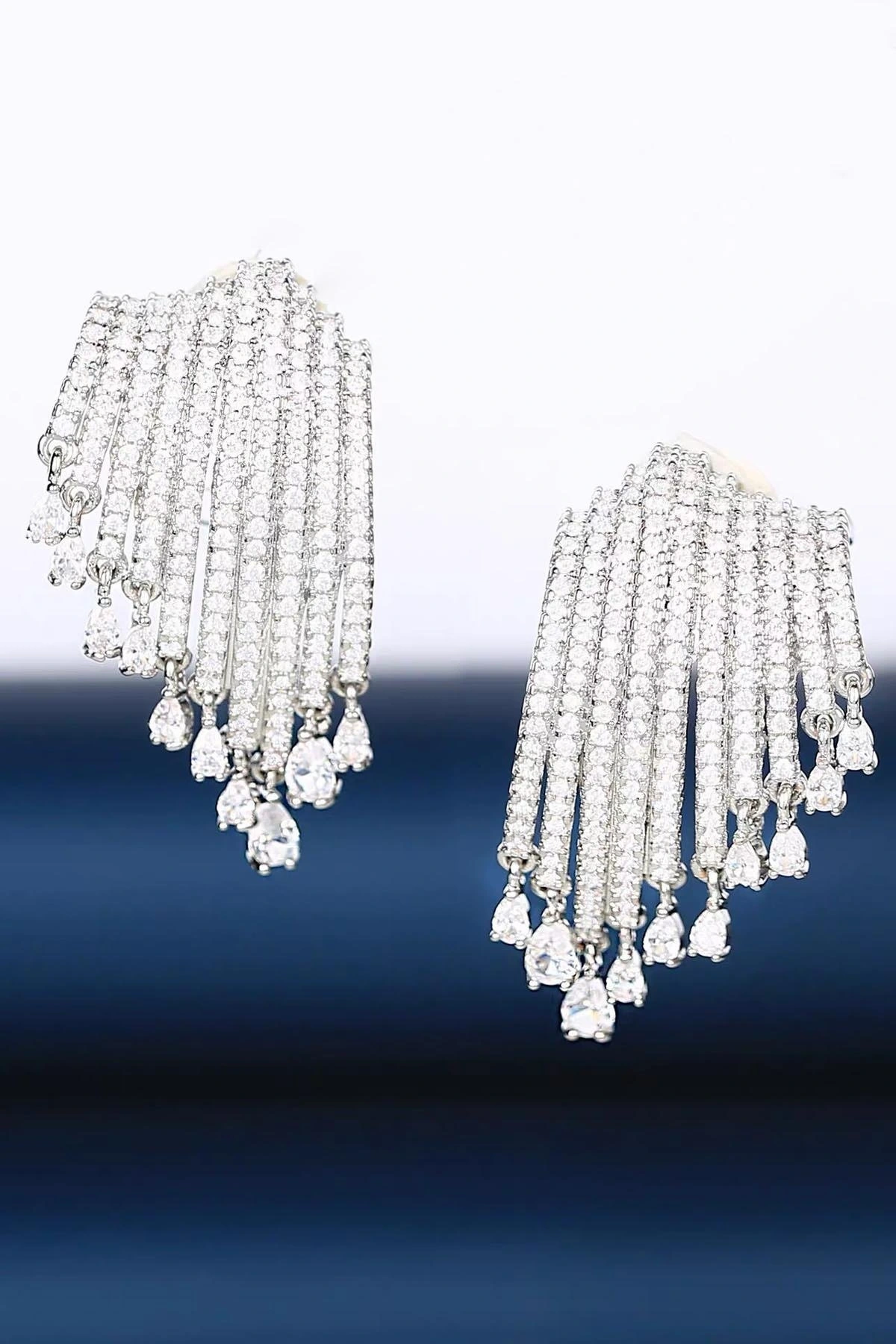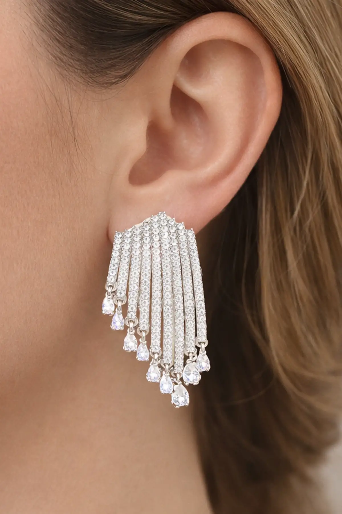 Gümüş Renk Taşlı Abiye Küpe (Çift)