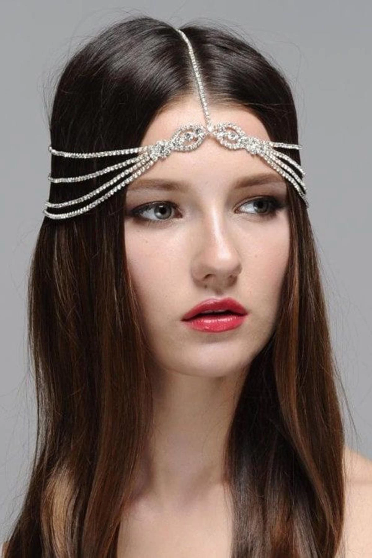 Gümüş Renk Taşlı Alınlık/Gelin Aksesuar