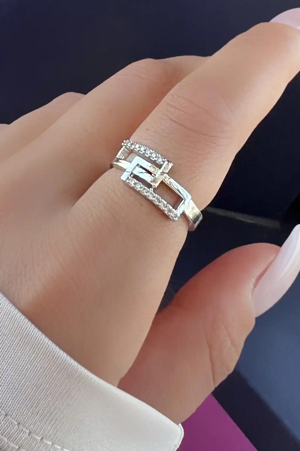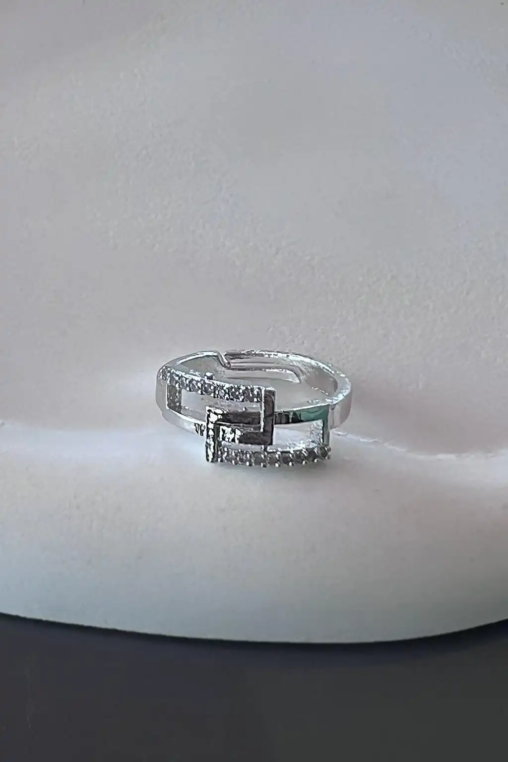 Gümüş Renk Taşlı Ayarlanabilir Yüzük