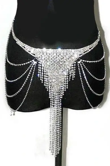 Gümüş Renk Taş Detaylı Bel Zinciri/Vücut Aksesuar