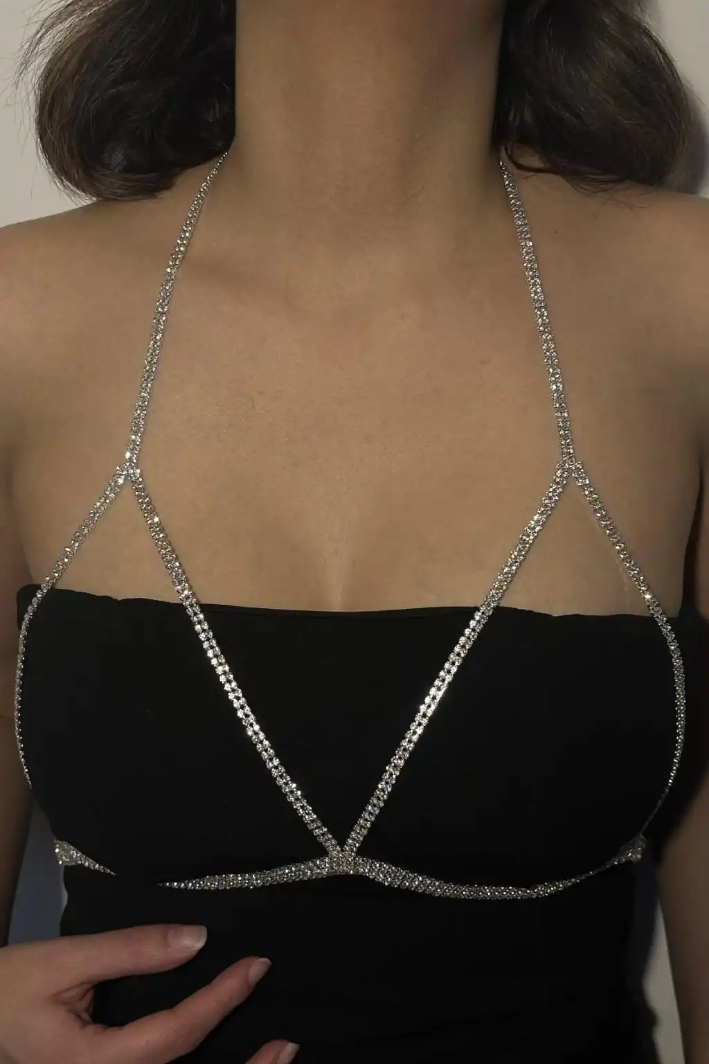 Gümüş Renk Taşlı Bikini Üstü/ Vücut Aksesuarı
