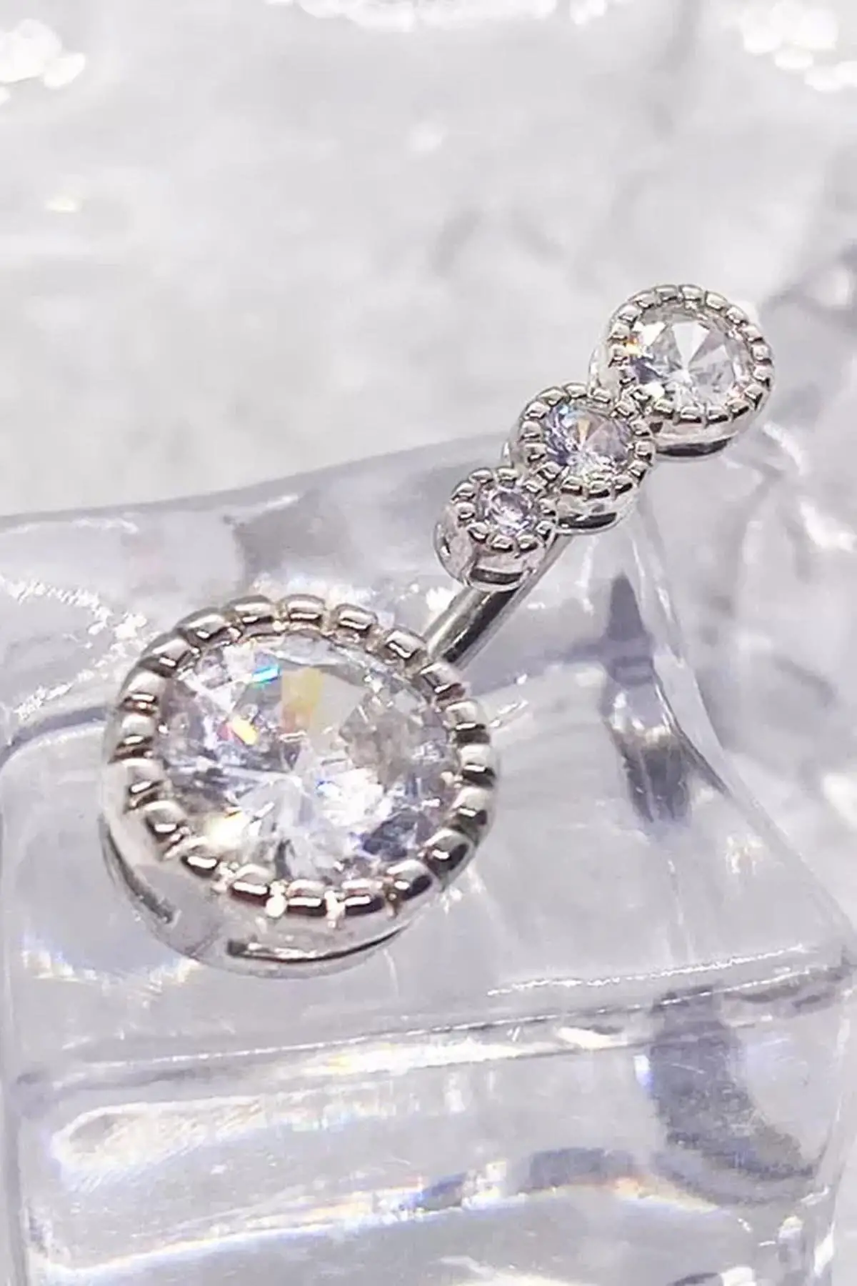 Gümüş Renk Taşlı Cerrahi Çelik Göbek Piercingi