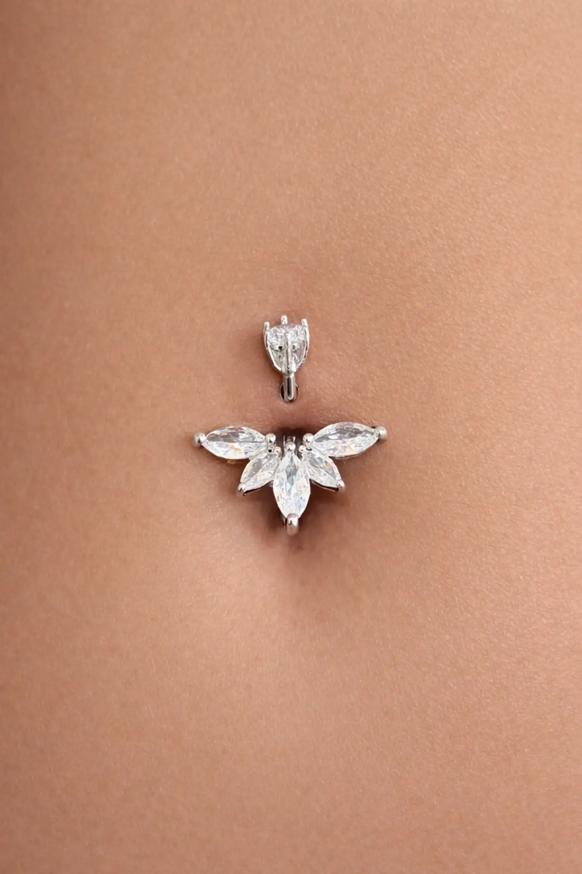 Gümüş Renk Kelebek Figürlü Cerrahi Çelik Göbek Piercing
