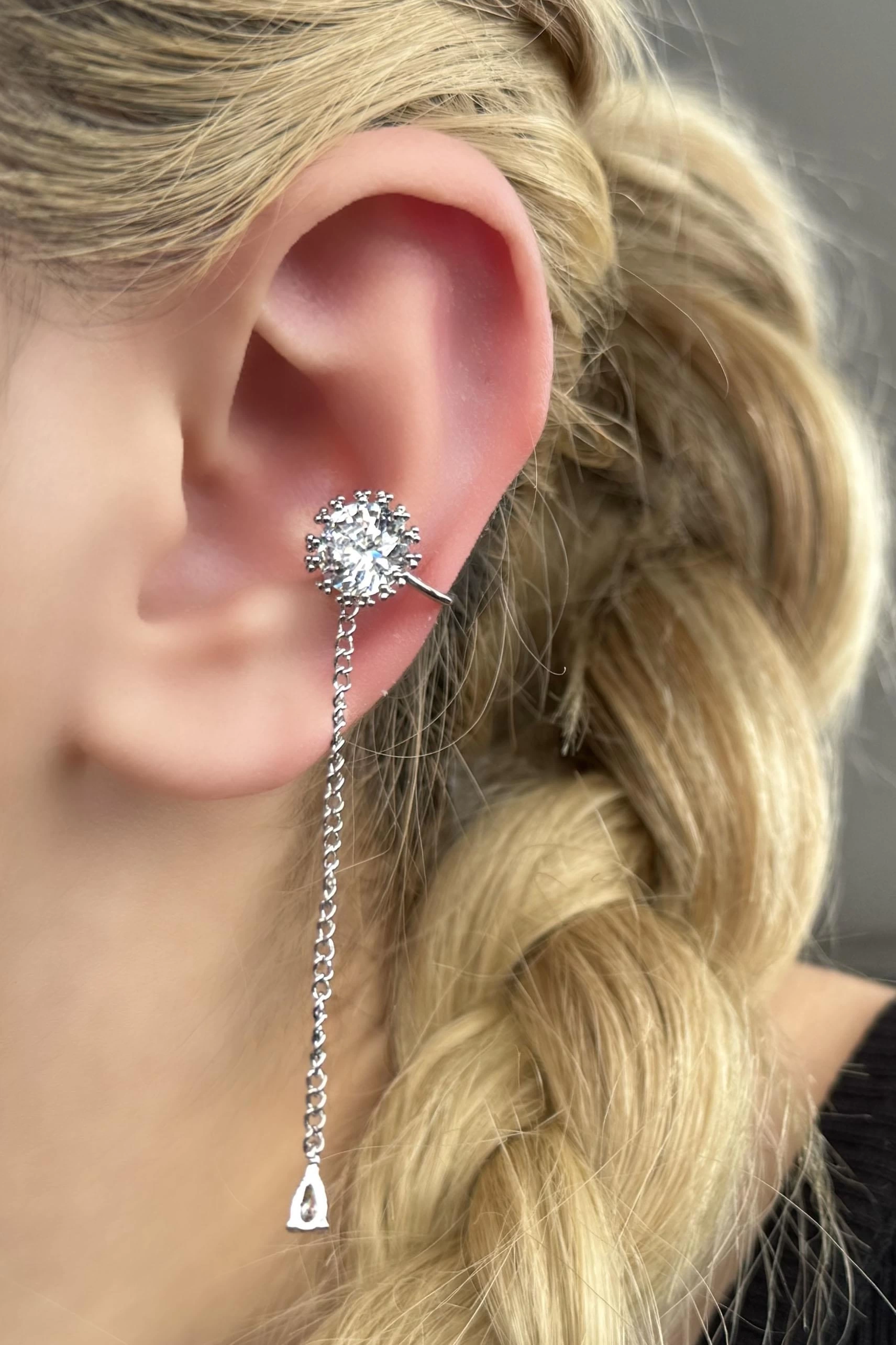 Gümüş Renk Taşlı Ear Cuff (Tek)