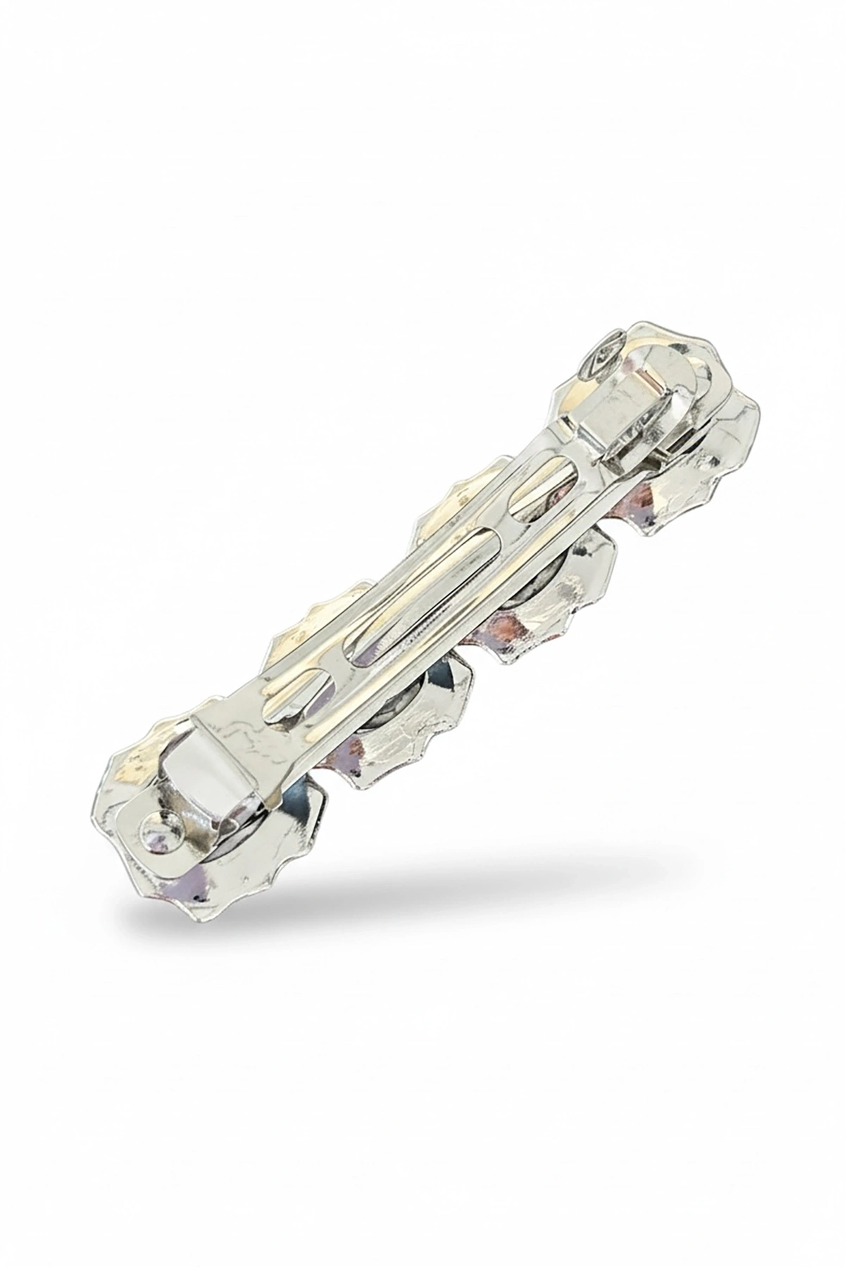 Gümüş Renk İnci Detaylı Metal Otomat Toka