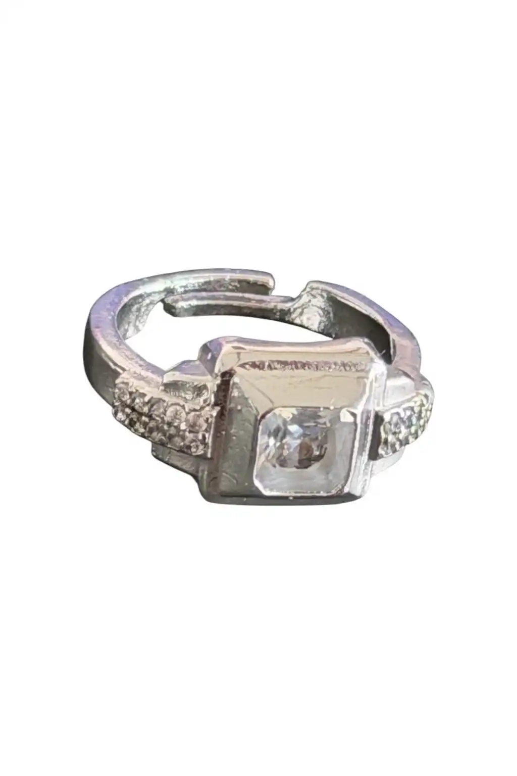 Gümüş Renk Taşlı Serçe Parmak Yüzük (Ayarlanabilir)