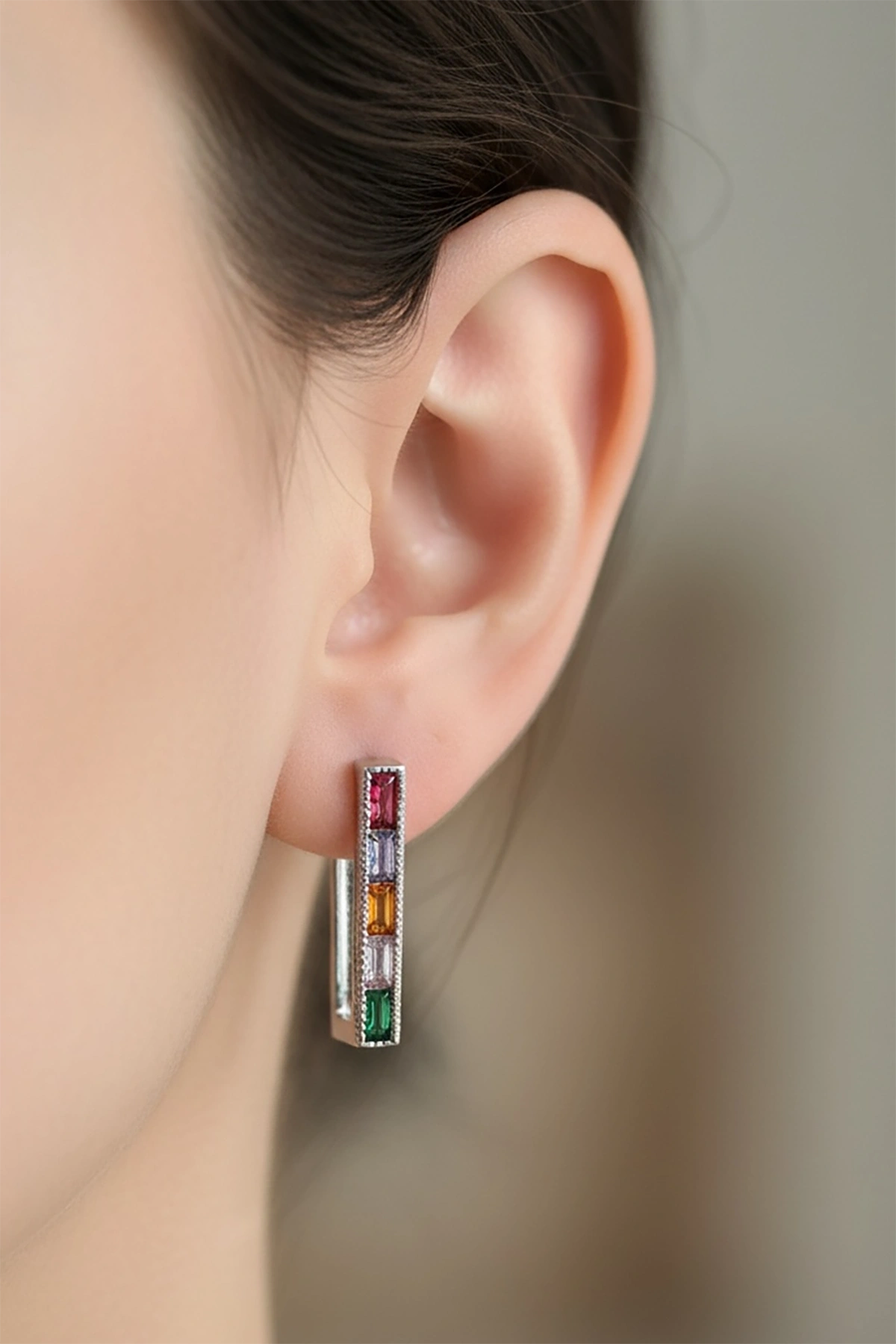 Gümüş Renk Taşlı Tx Küpe (Çift)
