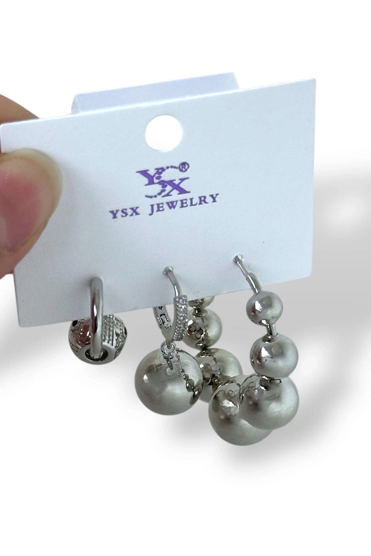 Gümüş Renk Top Detaylı VİP 3'lü YSX Küpe Set