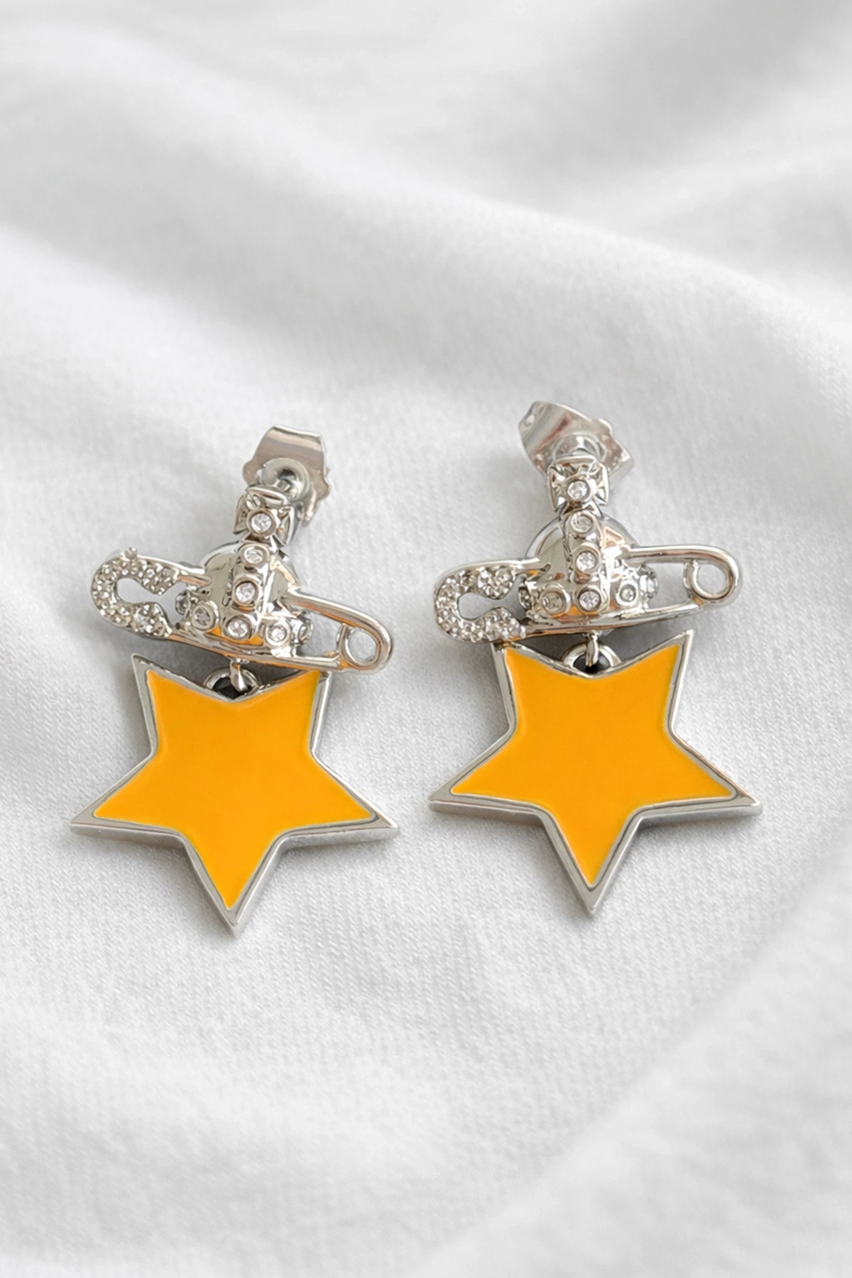 Gümüş Renk Turuncu Yıldız Figürlü 14K Altın Kaplama TX Küpe (Çift)