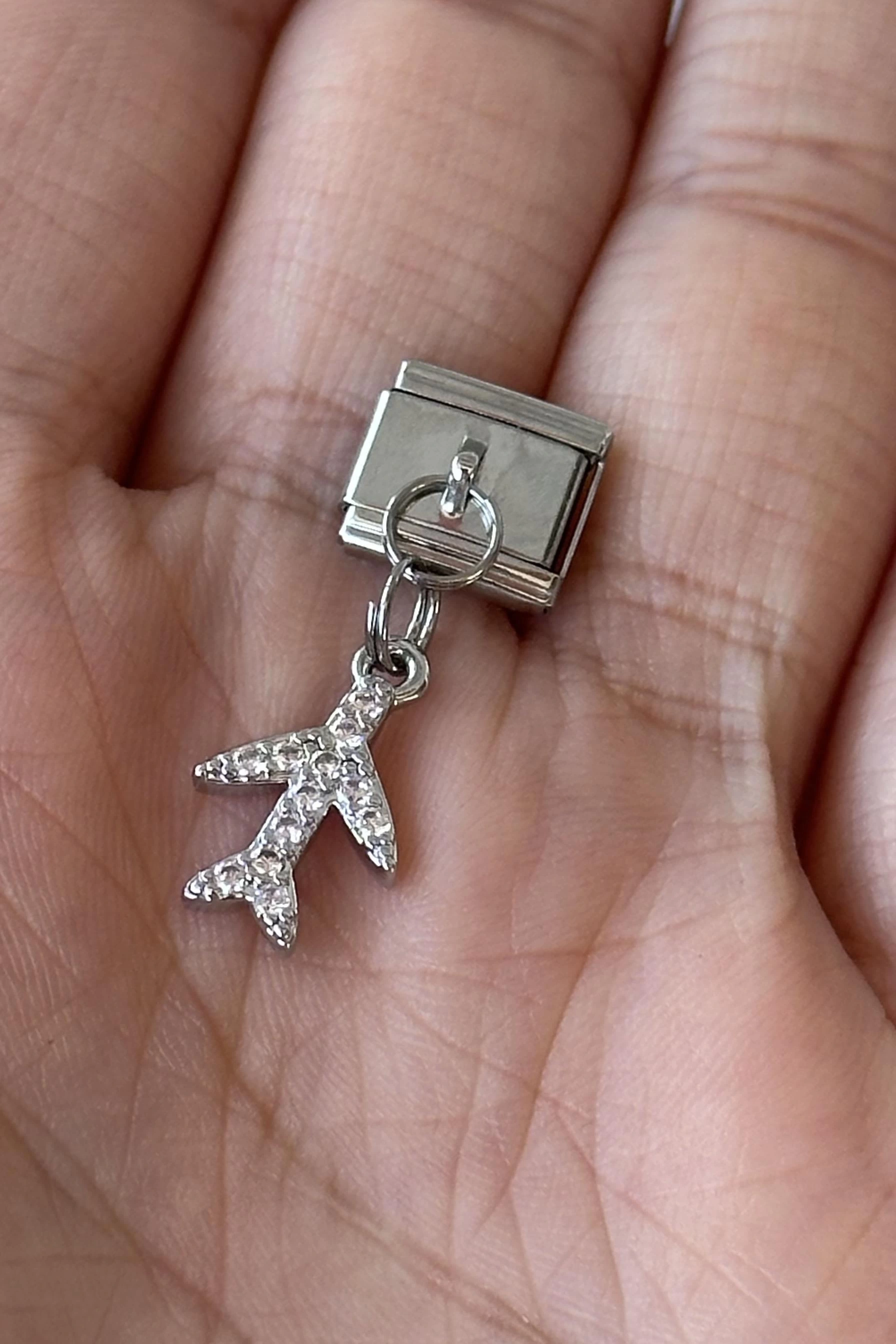 Gümüş Renk Uçak Figürlü Taş Detaylı Çelik Nomination Charm (Tek)