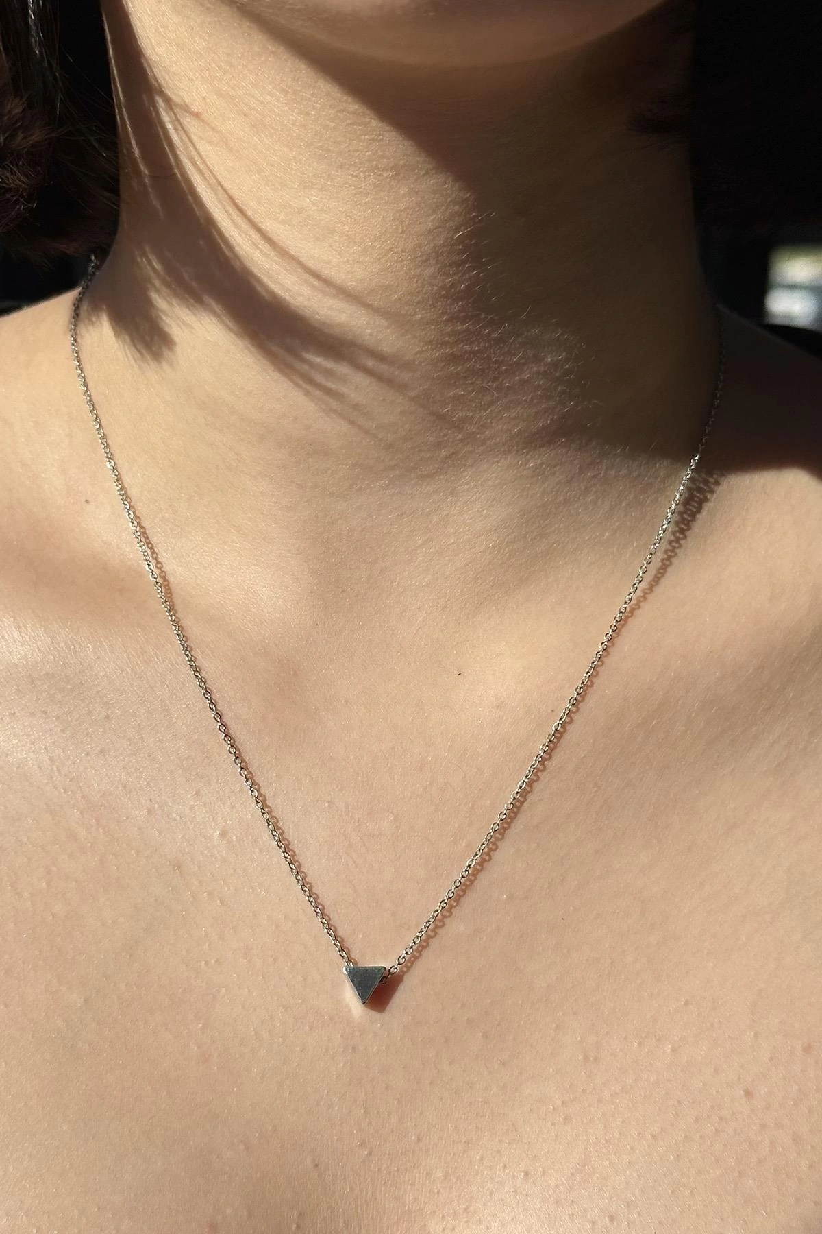 Gümüş Renk Üçgen Figürlü Kolye