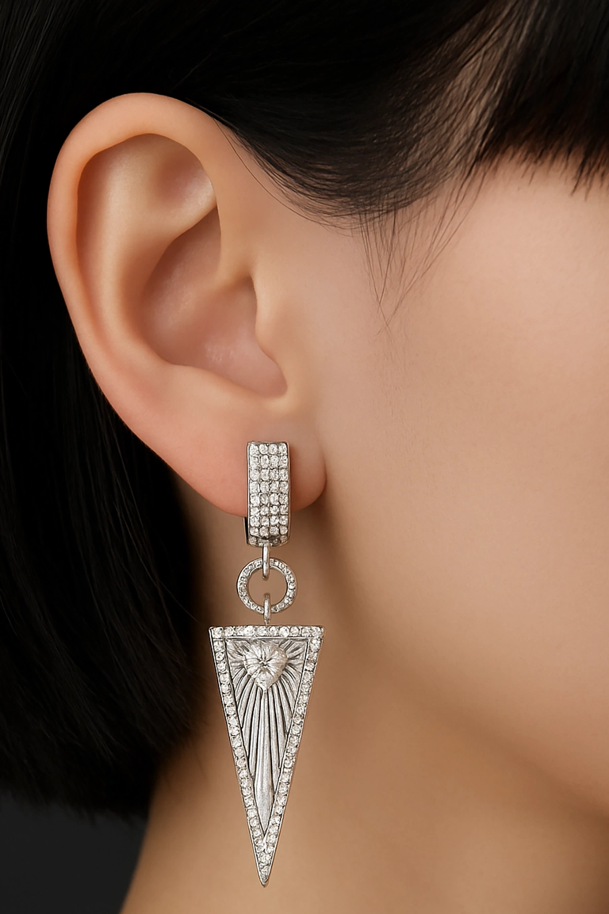 Gümüş Renk Üçgen Figürlü Taş Detaylı 14K Altın Kaplama TX Küpe (Çift)