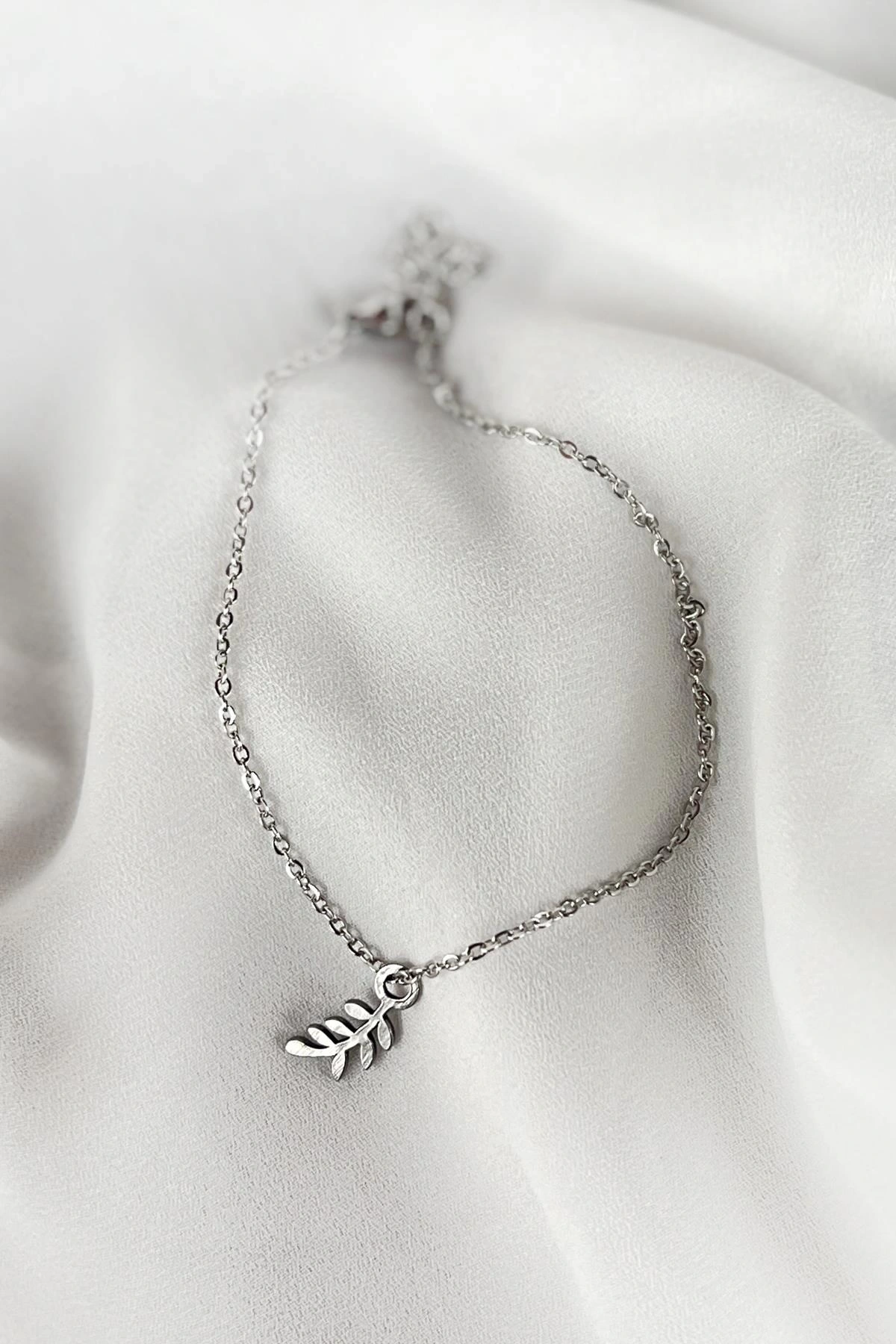 Gümüş Renk Yaprak Figürlü Çelik Halhal
