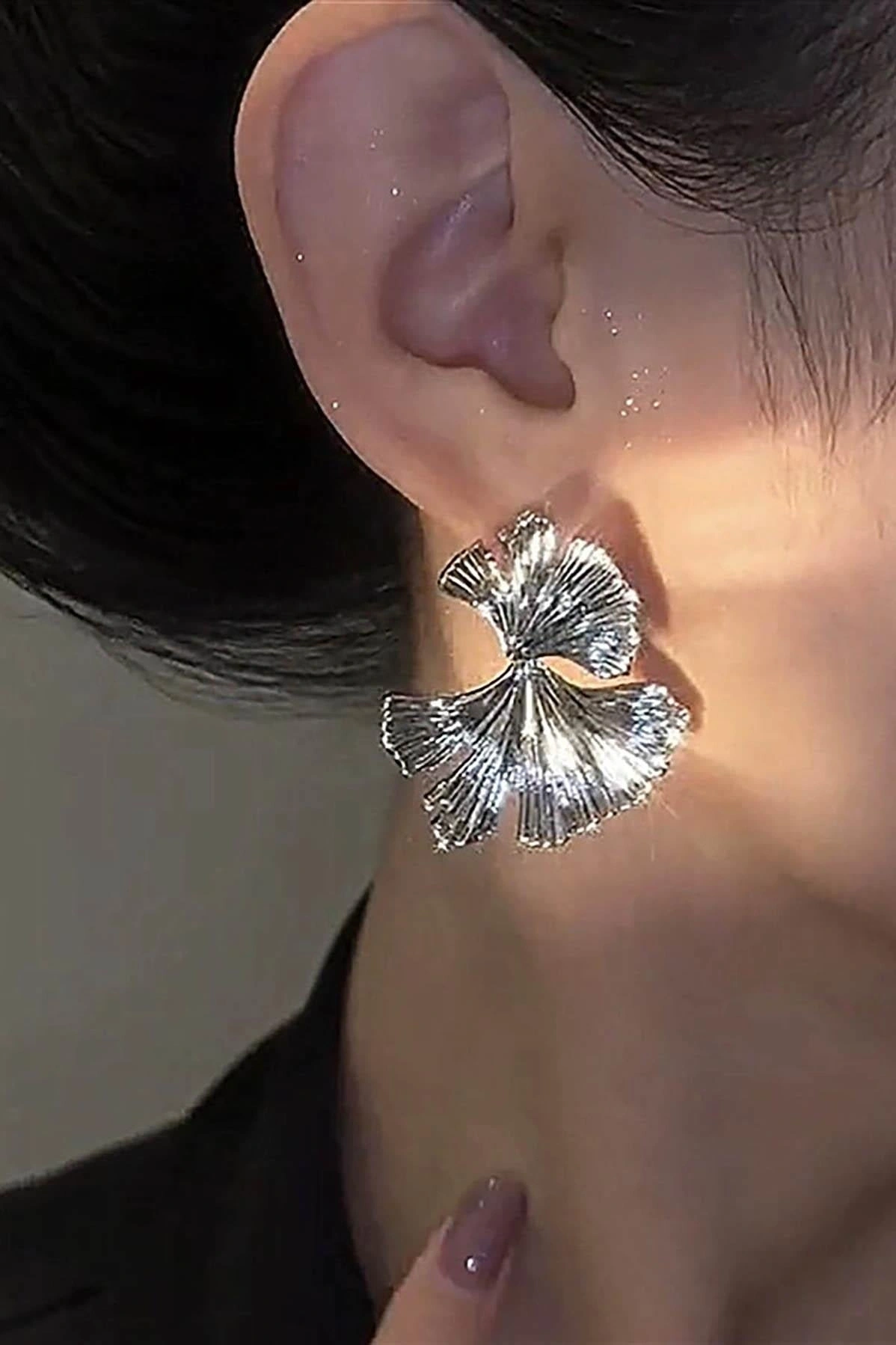 Gümüş Renk Yaprak Figürlü Küpe (Çift)