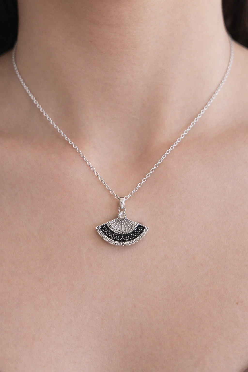 Gümüş Renk Yelpaze Figürlü Çelik Kolye
