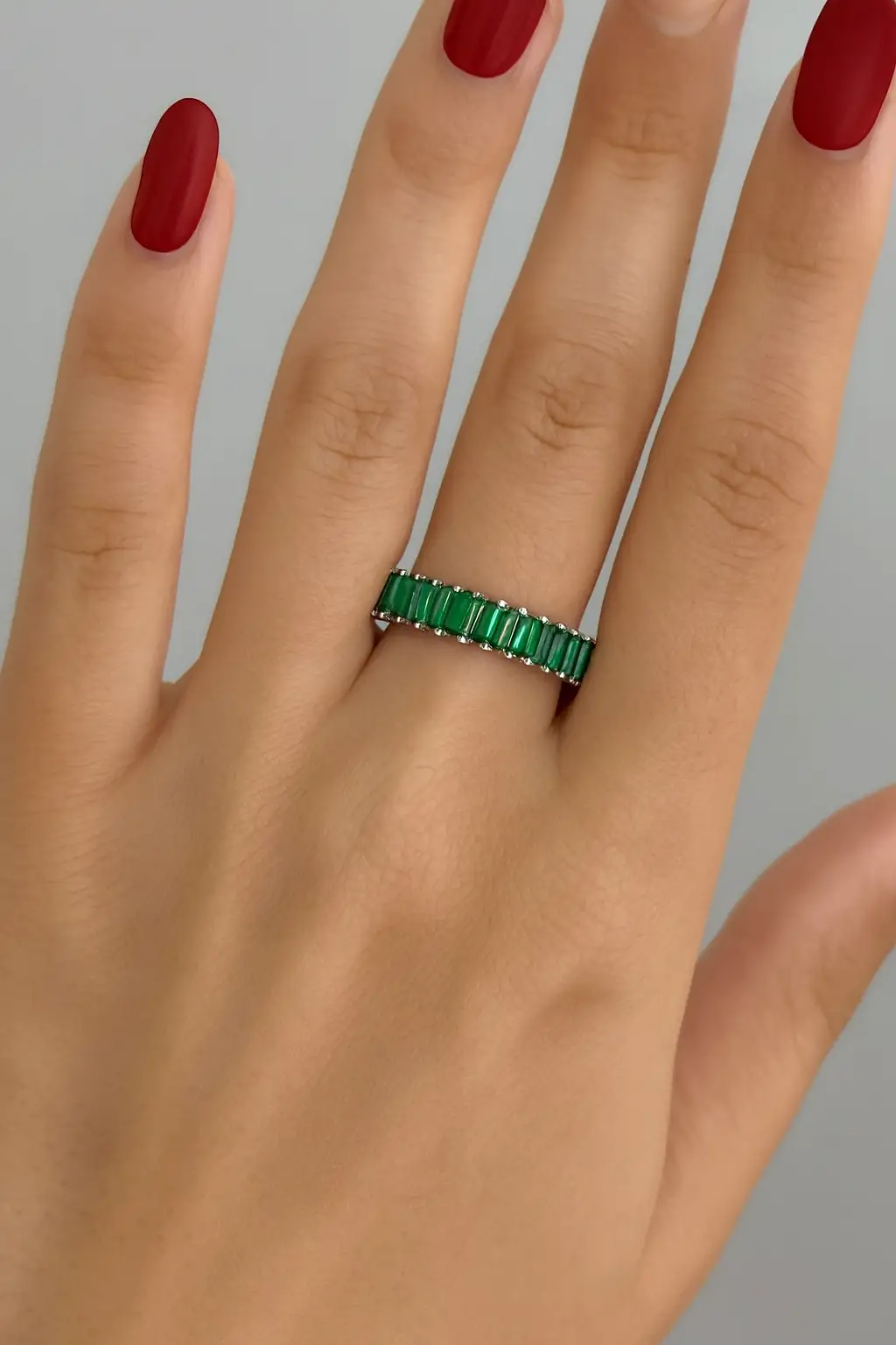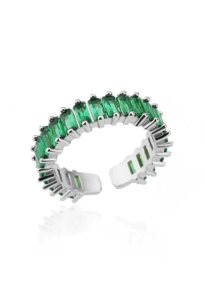 Gümüş Renk Yeşil Taş Detaylı Ayarlanabilir Çelik Yüzük