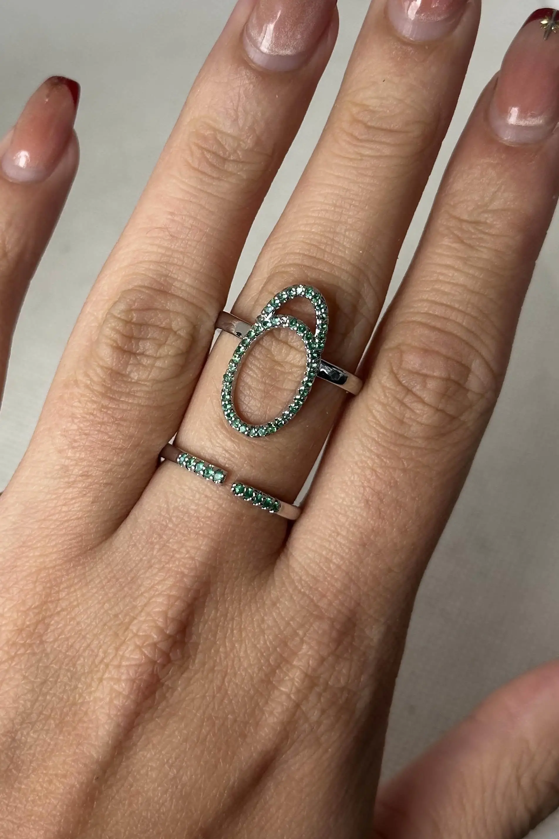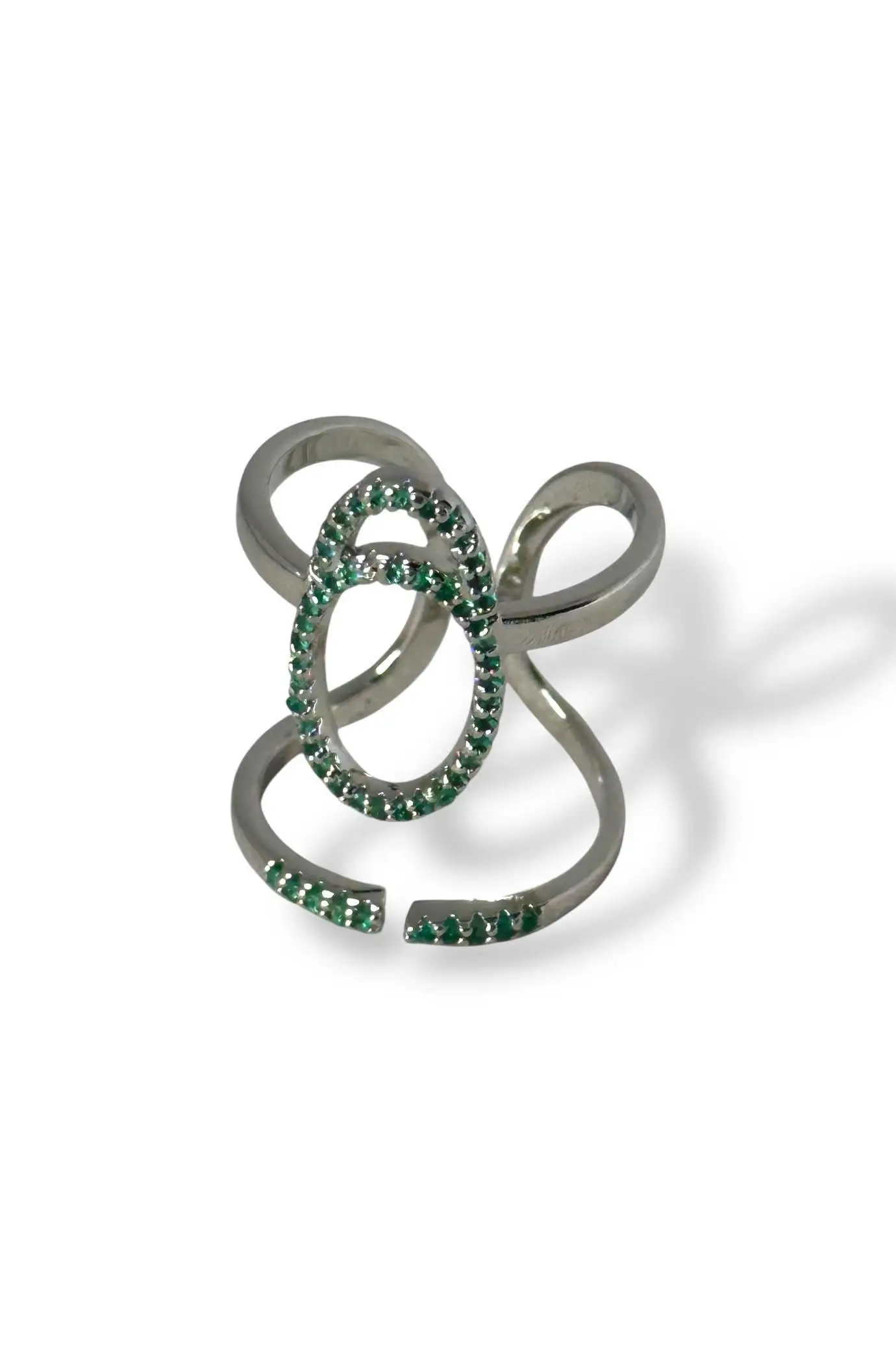 Gümüş Renk Yeşil Taş Detaylı Ayarlanabilir Çelik Yüzük