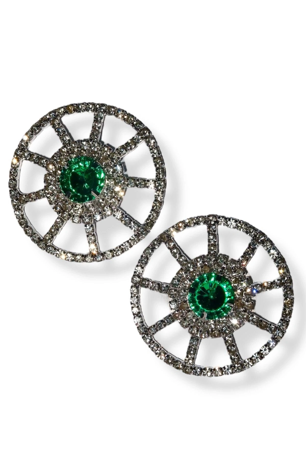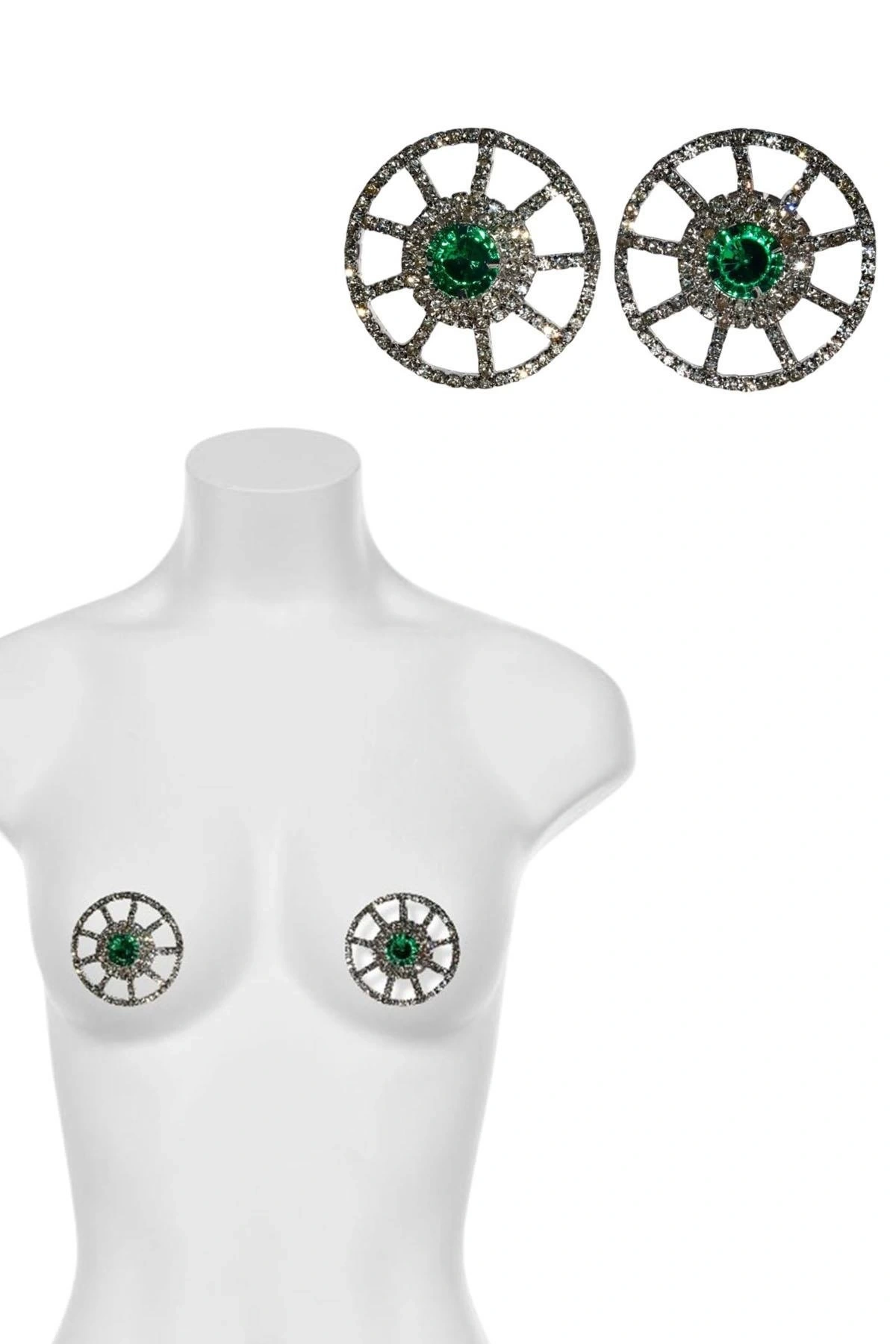 Gümüş Renk Yeşil Taş Detaylı Tasarım Göğüs Ucu Aksesuar
