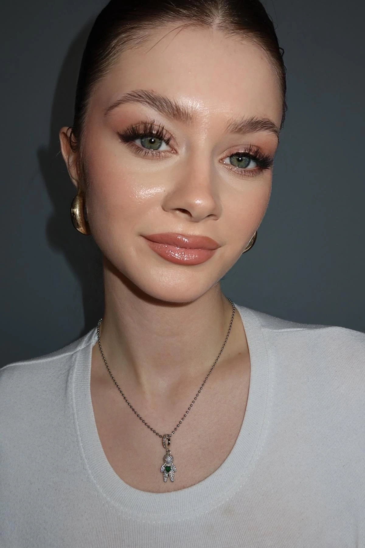 Gümüş Renk Yeşil Taş Detaylı YSX Kolye