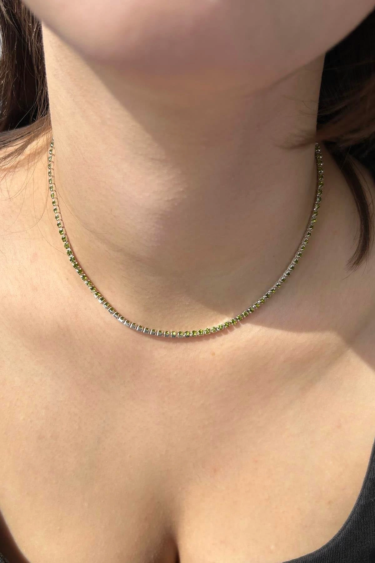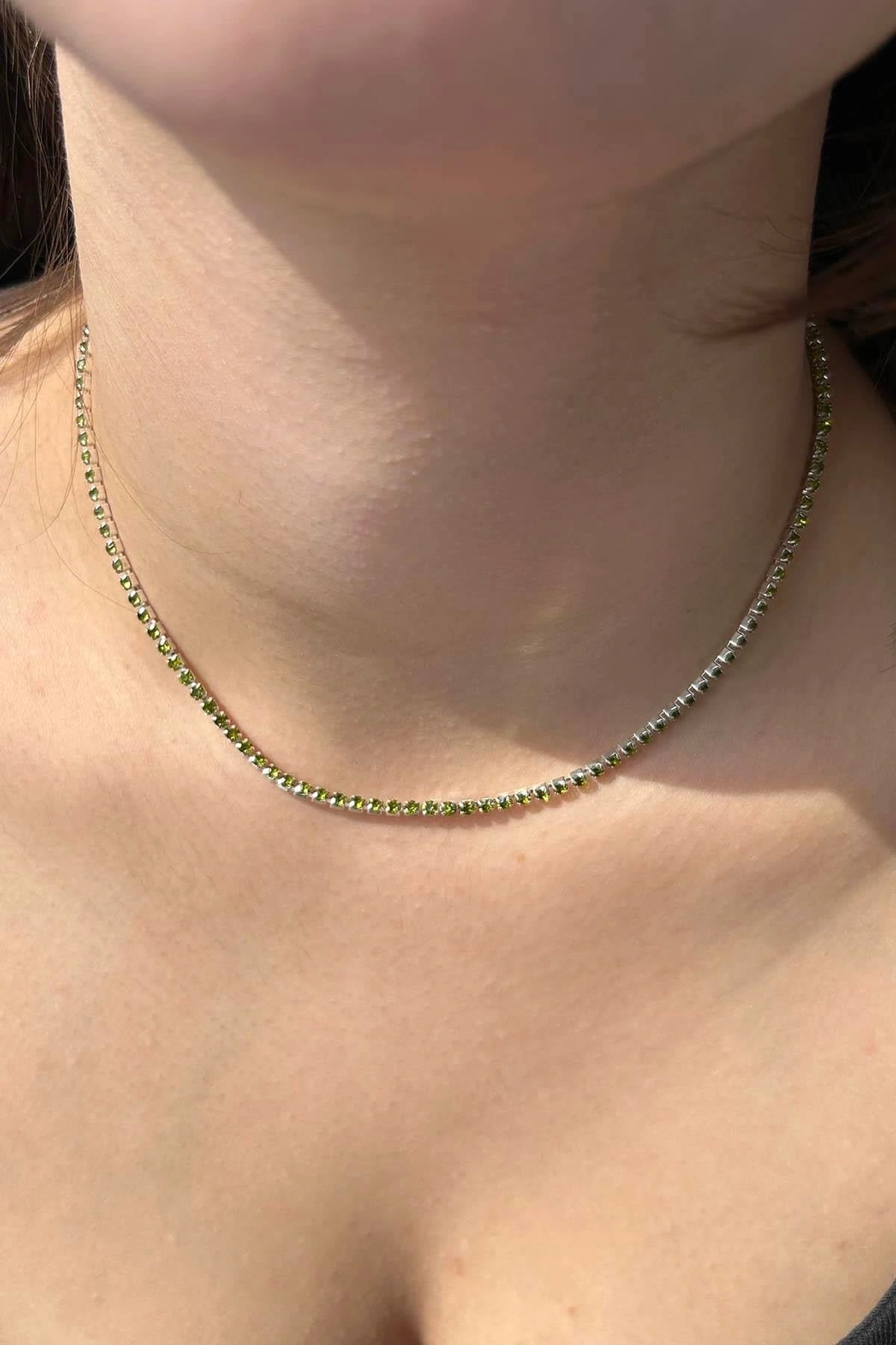 Gümüş Renk Yeşil Taşlı Su Yolu Kolye