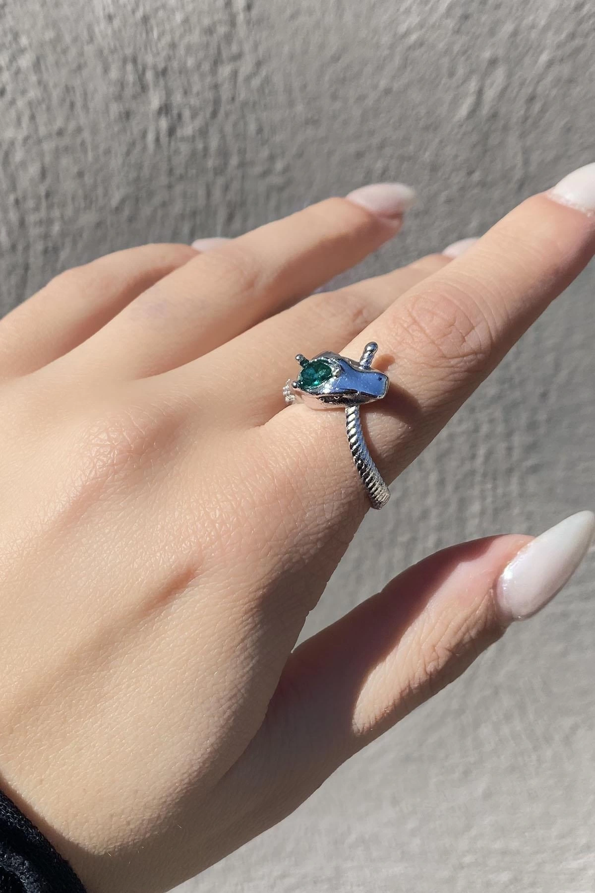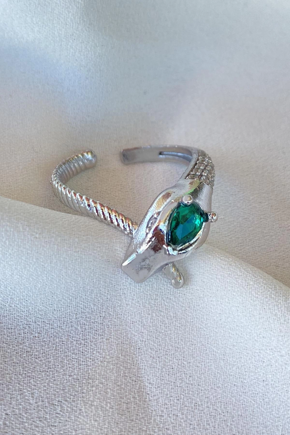 Gümüş Renk Yılan Figürlü Ayarlanabilir Yüzük
