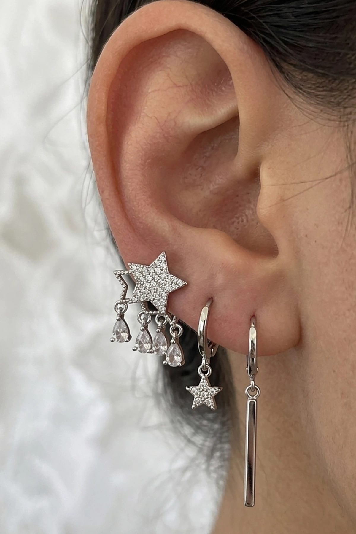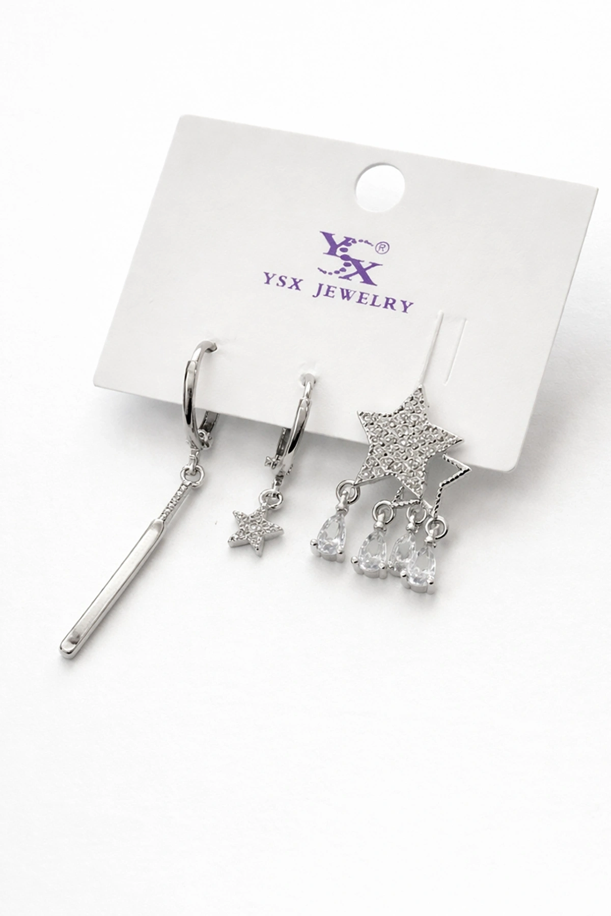 Gümüş Renk Yıldız Figürlü 3'lü YSX Küpe Set