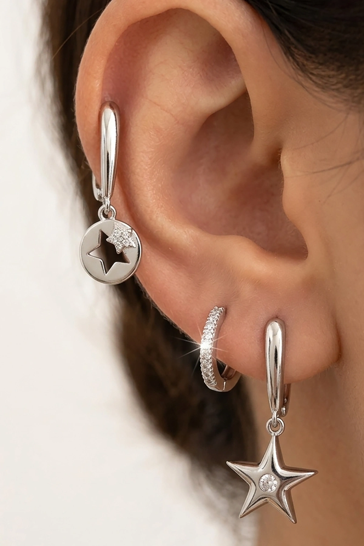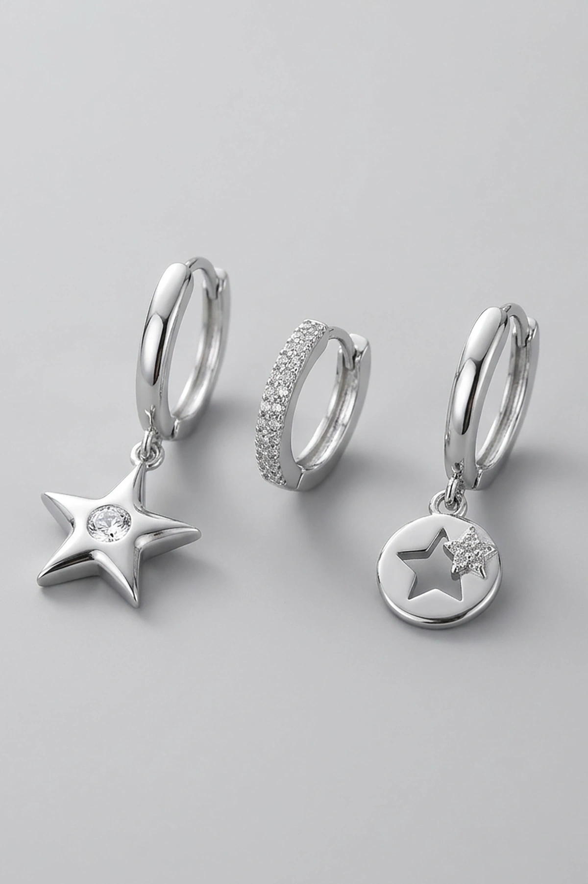 Gümüş Renk Yıldız Figürlü 3'lü YSX Küpe Set