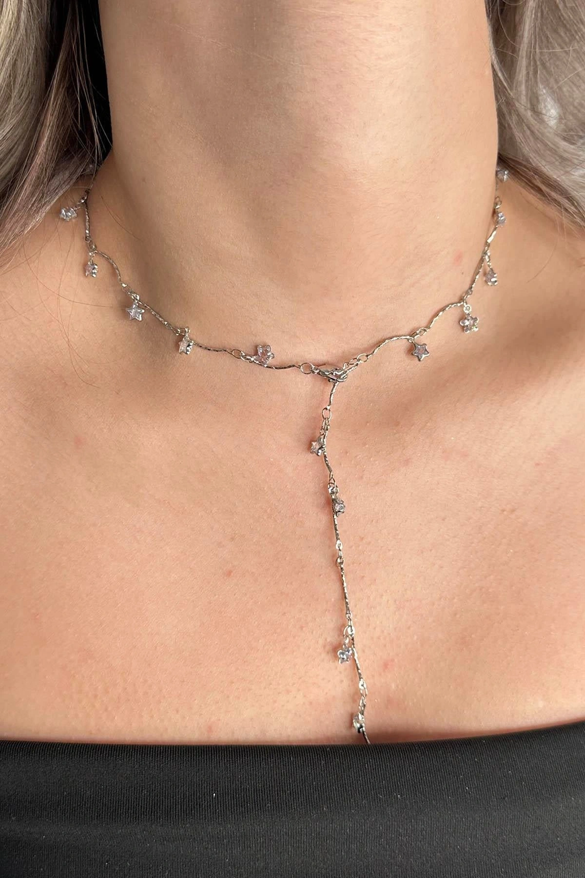 Gümüş Renk Yıldız Figürlü Çelik Y Kolye