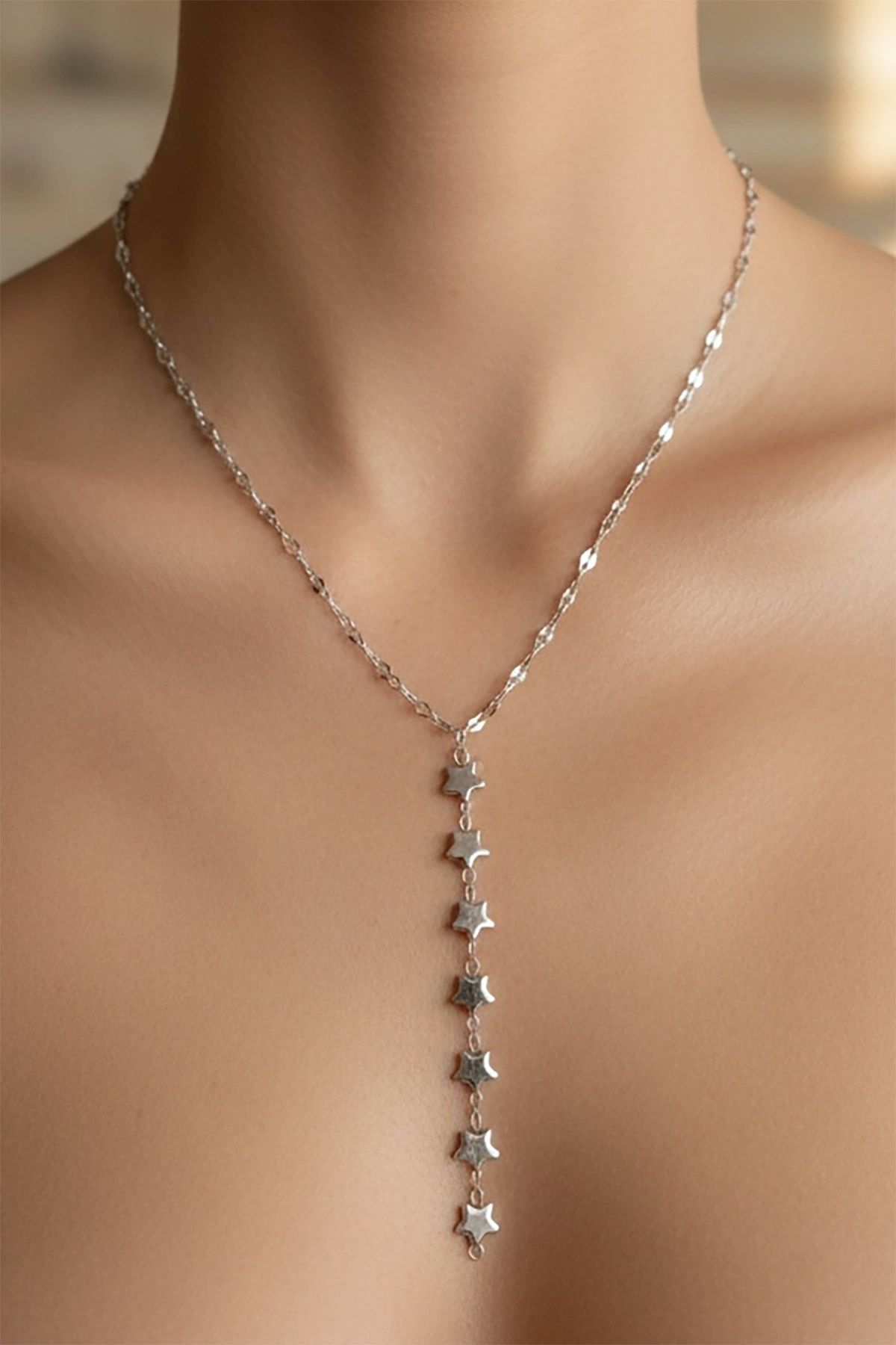 Gümüş Renk Yıldız Figürlü Çelik Y Kolye