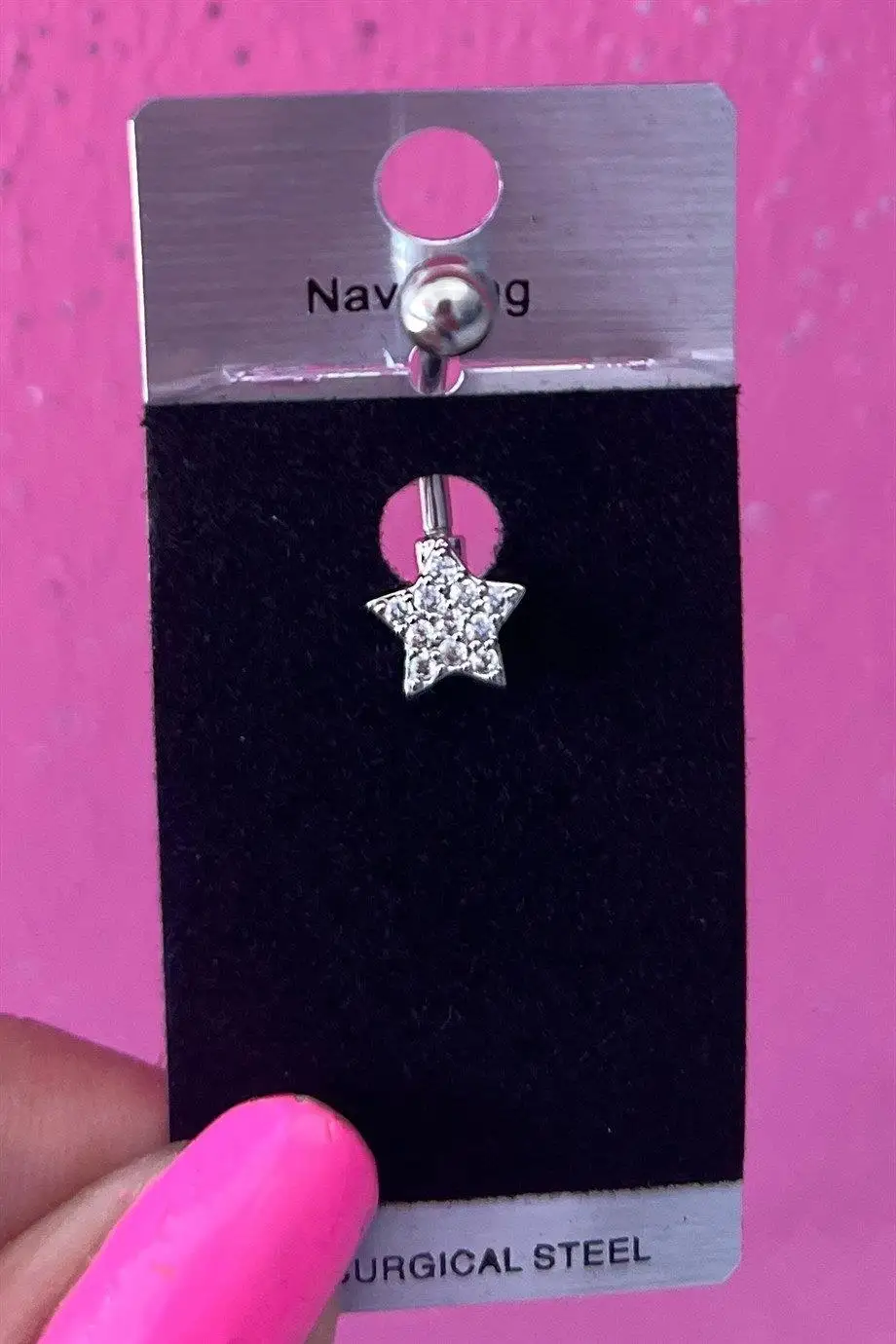 Gümüş Renk Yıldız Figürlü Cerrahi Çelik Göbek Piercing