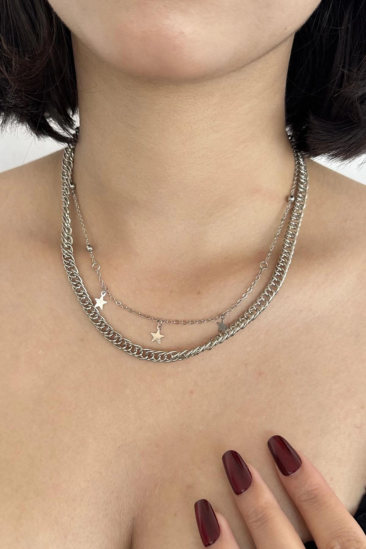 Gümüş Renk Yıldız Figürlü İkili Kolye
