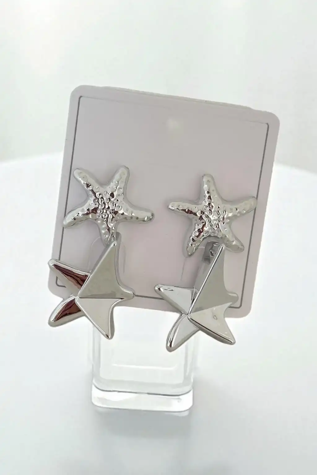 Gümüş Renk Yıldız Figürlü Küpe Set