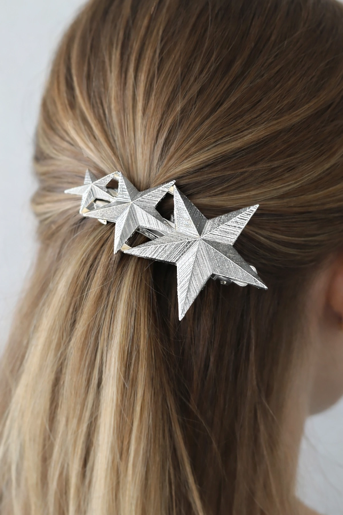 Gümüş Renk Yıldız Figürlü Metal Otomat Toka