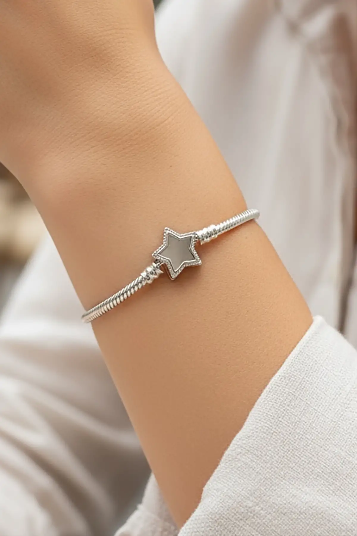 Gümüş Renk Yıldız Figürlü Pandora Bileklik