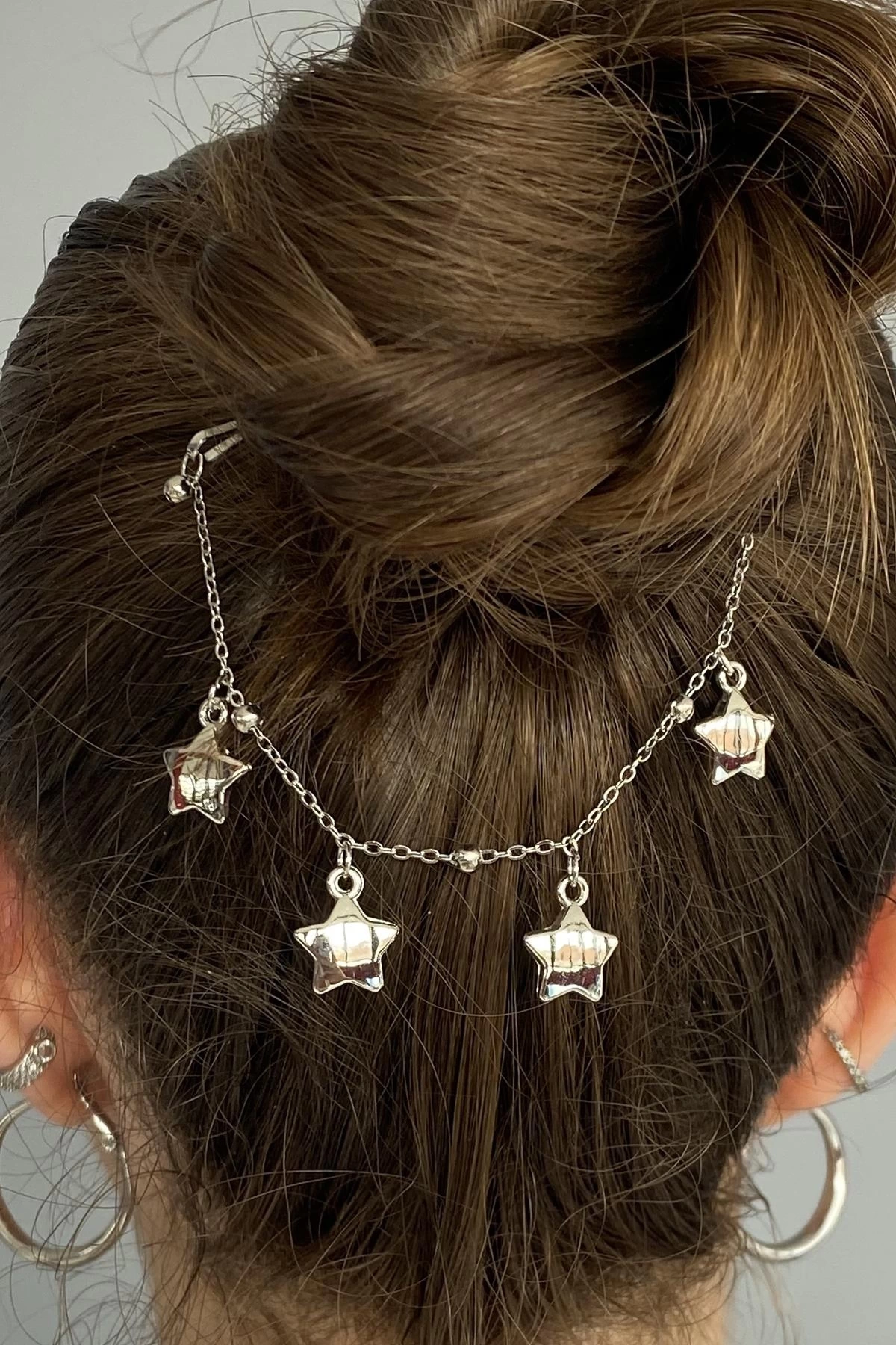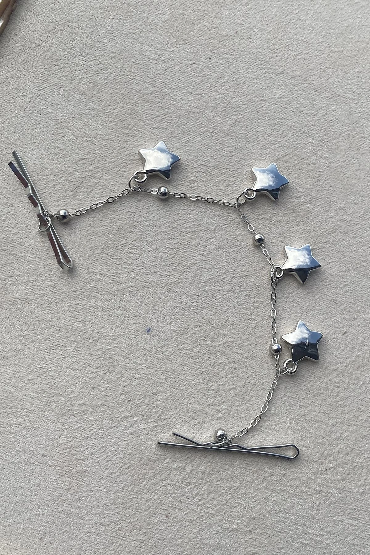 Gümüş Renk Yıldız Figürlü Sallantılı Tel Toka