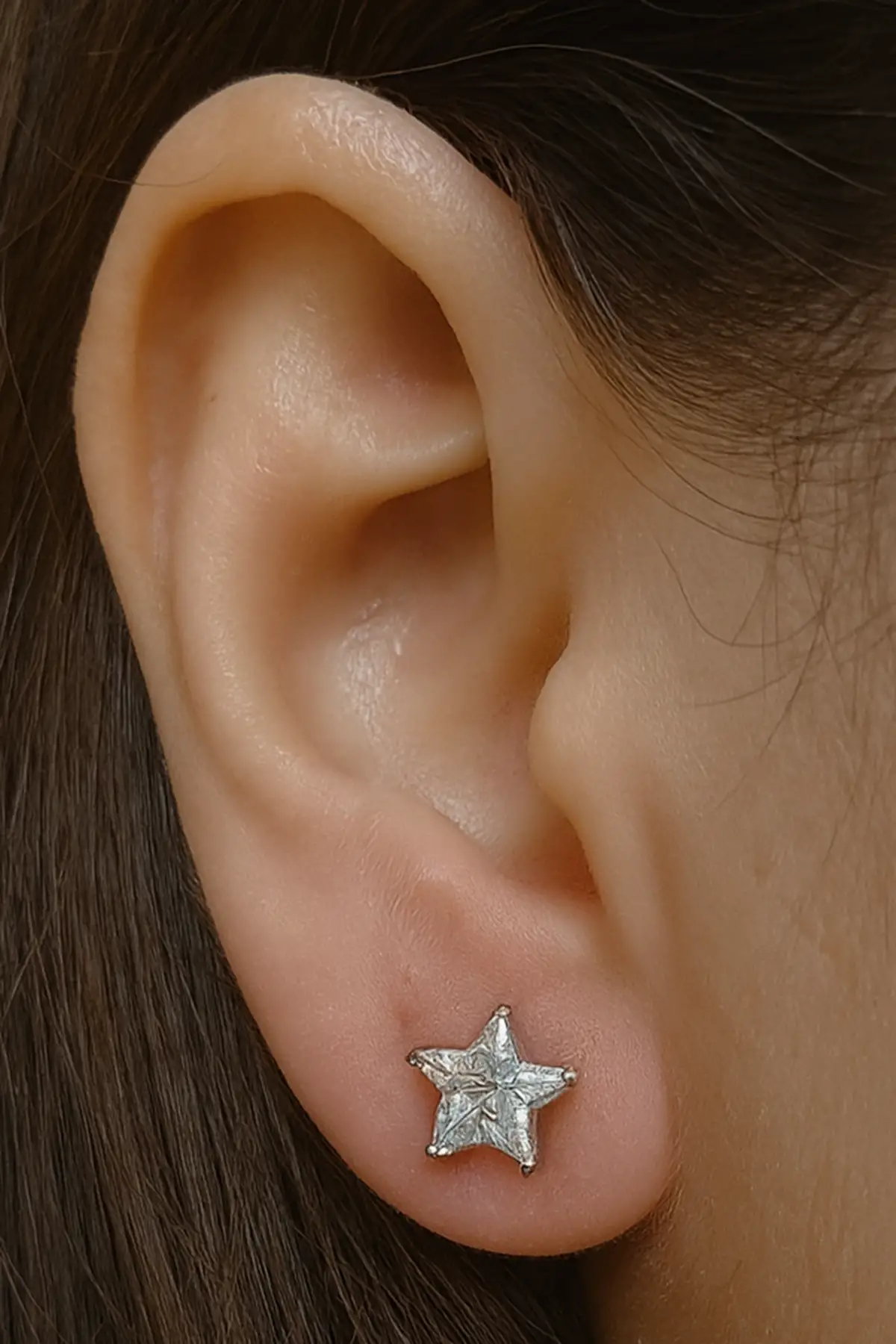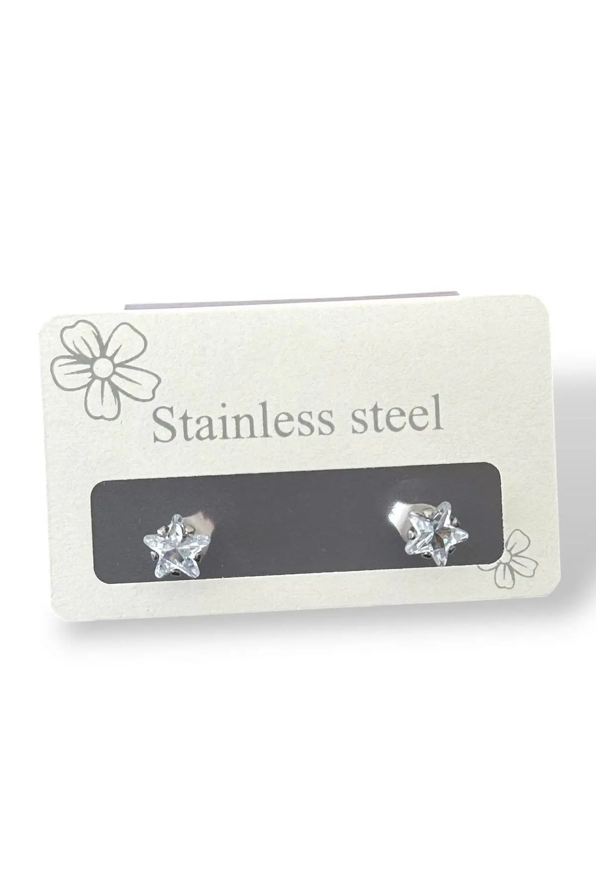 Gümüş Renk Yıldız Figürlü Taş Detaylı Çelik Küpe (Çift)