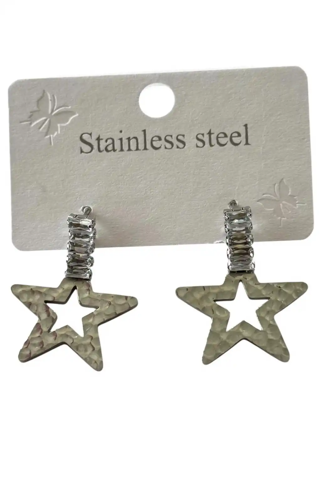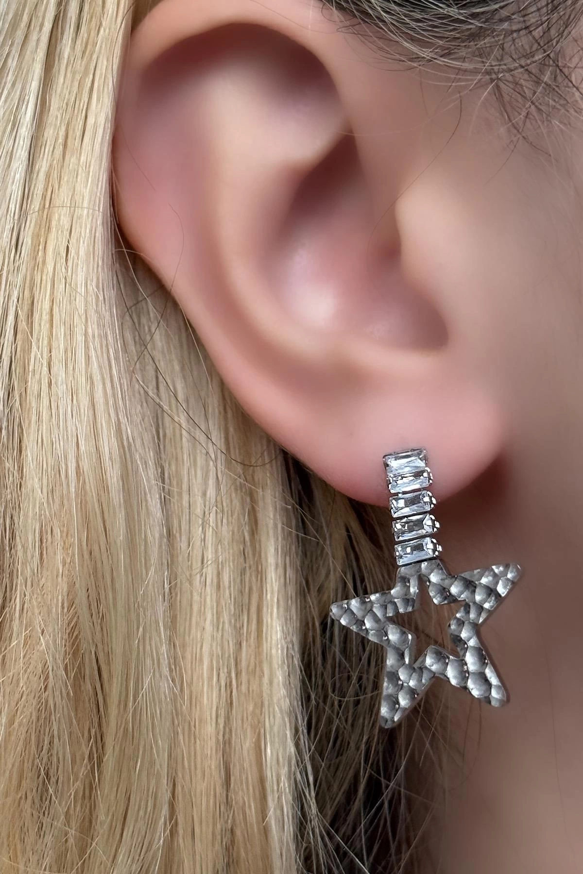 Gümüş Renk Yıldız Figürlü Taş Detaylı Çelik Küpe (Çift)